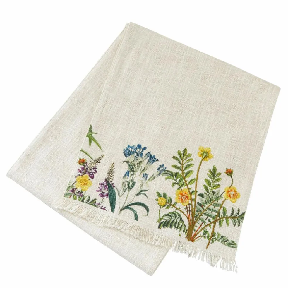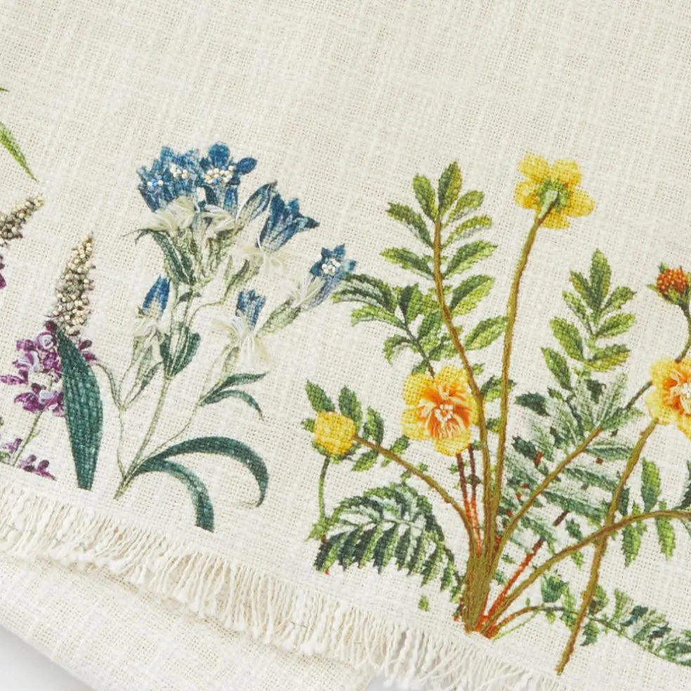 Verleihen Sie Ihrem Essbereich oder Wohnzimmer mit diesem einzigartigen Tischläufer aus reiner Baumwolle eine besondere Note. Die grobe Webstruktur vermittelt ein rustikales und zugleich modernes Flair, während die doppellagige Verarbeitung für zusätzliche Stabilität und ein angenehmes Gewicht sorgt. Die präzise ausgeführte Blumenstickerei ist nicht nur ein optischer Höhepunkt, sondern wird durch feine Perlen in den Blütenmitten veredelt, was für dezente, funkelnde Akzente sorgt. Abgerundet wird das Design durch eine verspielte Fransenkante, die dem Tischläufer ein charmantes und stilvolles Finish verleiht. Ideal für jede Gelegenheit, bei der Tischdekorationen nicht nur funktional, sondern auch ästhetisch ansprechend sein sollen.