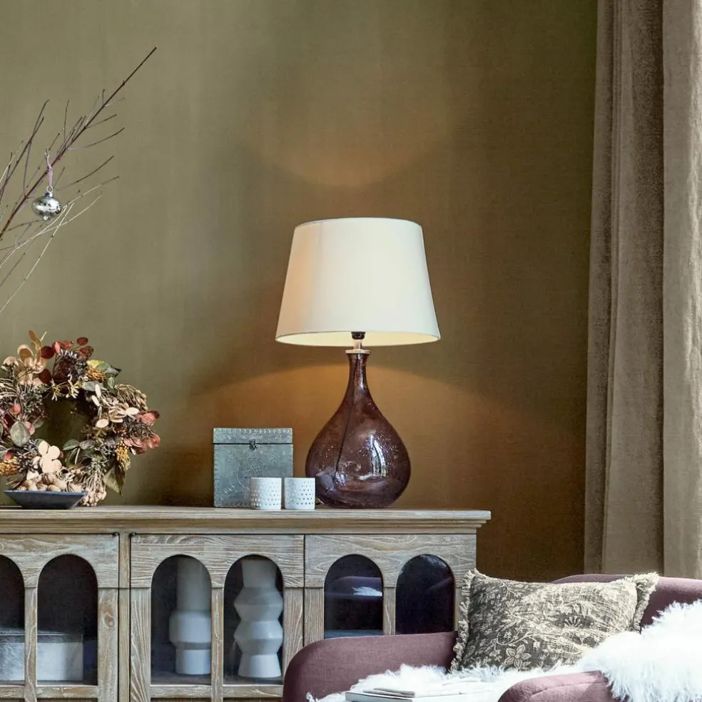 Diese Tischlampe zieht alle Blicke auf sich. Der mundgeblasene Glasfuß, in den während des Herstellungsprozesses kleine Partikel eingearbeitet wurden, sorgt für eine faszinierende und einzigartige Optik. Ergänzt wird das Design durch einen hochwertigen Lampenschirm aus reiner Baumwolle, der das Licht sanft und gleichmäßig verteilt. Diese Kombination aus kunstvoll gestaltetem Glas und weichem Stoff macht die Lampe zu einem stilvollen und funktionalen Element, das jedem Raum Eleganz und Gemütlichkeit verleiht. Ob auf dem Nachttisch, im Wohnzimmer oder im Büro – diese Tischlampe setzt überall beeindruckende Akzente.