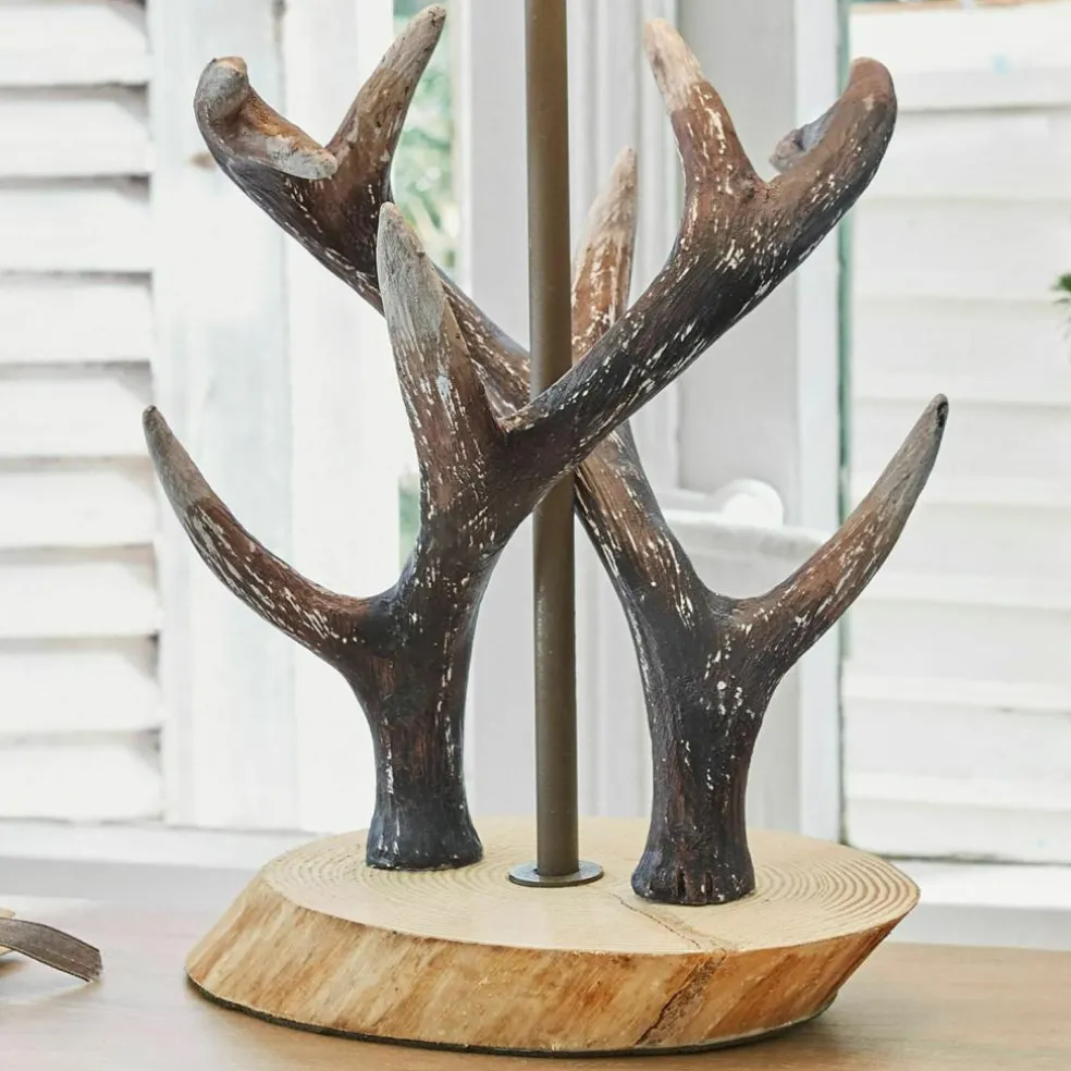 Willkommen im Chalet! Mit dieser individuellen Lampe holen Sie sich den herrlich gemütlichen Charakter einer heimeligen Blockhütte nach Hause. Den Schirm aus weichem Filz ziert ein hübscher Hirschkopf, der Fuß ist wie ein ganz authentisches Geweih gestaltet. Für einen perfekten Halt des Schirms ist noch eine Eisenstange mit angebracht. Am Ende befindet sich ein schicker Holzfuß, der dem ganzen Eleganz und Stabilität verleiht. Natur-Flair pur und ein rustikaler Akzent, der wunderbar zum Landhaus- und Chalet-Stil passt. Ob im Wohnzimmer oder am Bett platziert, hiermit wird es zu Hause besonders behaglich. Ein Hauch bäuerlicher Charme und der Gedanke an tiefgrüne Wälder, verschneite Berge und einen ruhigen Rückzugsort in der Natur kommen bei diesem Anblick auf. Genießen Sie eine Auszeit bei angenehmer Illumination und setzen Sie einen attraktiven Deko-Akzent. Mit einem Kippschalter ausgestattet.