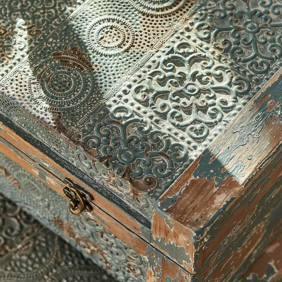 Diese Truhen im 2er Set vereinen Funktionalität und Charakter in einem außergewöhnlichen Design. Gefertigt aus stabilem Holz und mit beeindruckenden Ornamenten versehen, ziehen sie alle Blicke auf sich. Das authentische Shabby-Finish verleiht ihnen eine nostalgische Note, die an vergangene Zeiten erinnert. Sie bieten nicht nur großzügigen Stauraum für allerlei Schätze, sondern passen auch noch perfekt ineinander – ideal für platzsparende Aufbewahrung. Ob als dekoratives Highlight im Wohnzimmer oder als Aufbewahrungslösung im Schlafzimmer, dieses Set bringt Charme und Ordnung in jeden Raum.