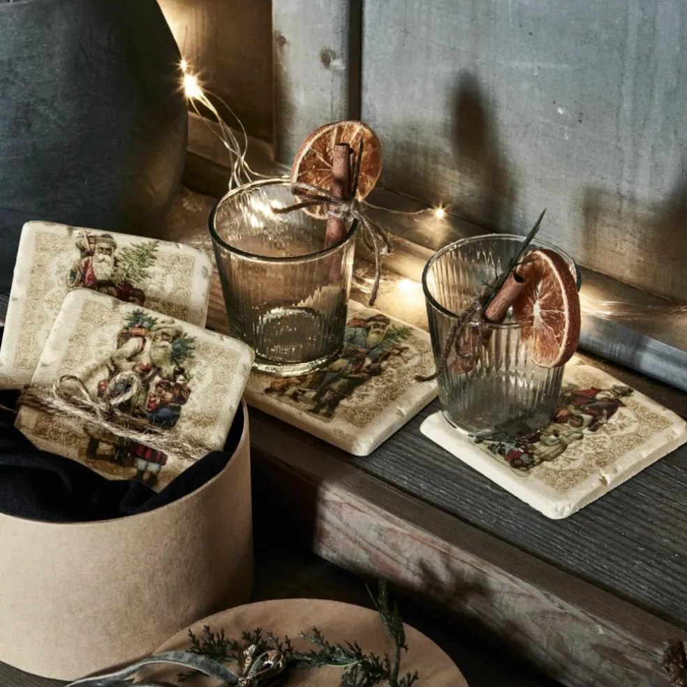 Vier kleine Kunstwerke, die optisch an antike Steinkacheln erinnern. Die Untersetzer aus Polyresin mit einer Unterseite aus dämpfendem Kork schützen Ihren Tisch stilvoll. Stellen Sie heiße Getränke wie Schokolade mit Sahne, den duftenden Winterpunsch oder auch die Champagnergläser zum Anstoßen am Festtag darauf ab und freuen Sie sich über einen stilvollen dekorativen Akzent. Unterschiedliche historische Weihnachtsszenen zieren die vier Untersetzer. Sie sind sehr liebevoll und detailverliebt gestaltet und bringen ein wunderbar nostalgisches und gemütliches Gefühl in ihre Weihnachtsstube.