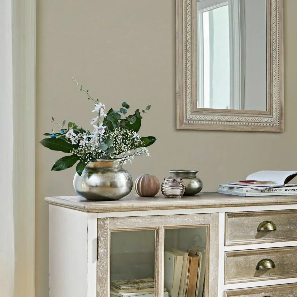 Ein edles Duo in zwei Größen aus schwerer Aluminiumguss-Qualität mit Antik-Finish. Besonders reizvoll wirken die kleinen Einschlüsse in Bläschen-Optik, welche im Gussverfahren entstehen. Durch sie ist die Oberfläche nicht ganz glatt und hat eine interessante Haptik. Die formschönen Vasen bilden ein zauberhaftes Doppel und verhelfen Blüten und Zweigen zum großen Auftritt. Ob Rosen, am Wegesrand gepflückte Blumen oder Ziergräser, hiermit setzen Sie zwei naturnahe und luxuriöse Akzente. Die eleganten und zeitlosen Vasen lassen sich alternativ auch gut als Schalen nutzen. Potpourris, Schmuck und andere kleine Dinge finden so ein hübsches Plätzchen. Zu Shabby-Chic wie Landhaus-Stil ist das schicke Duo ein echtes Highlight – ob auf dem Tisch, einem Sideboard oder auf der Fensterbank platziert.