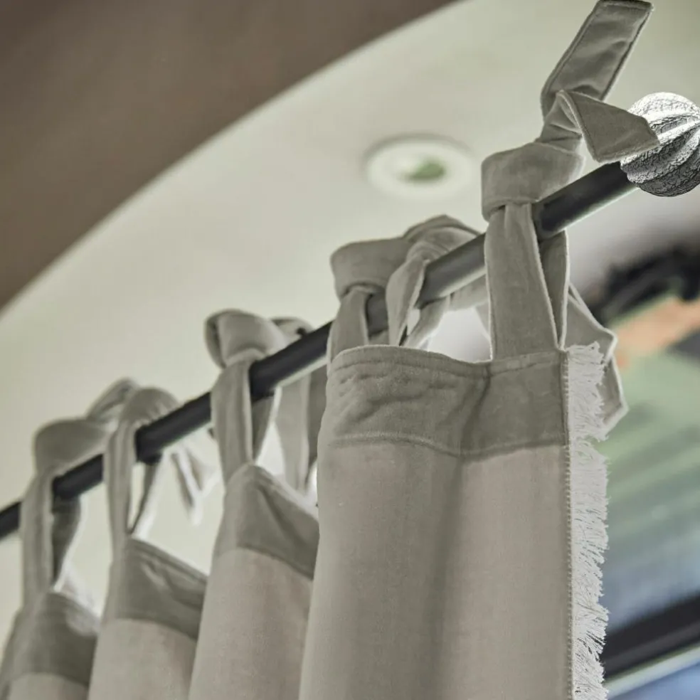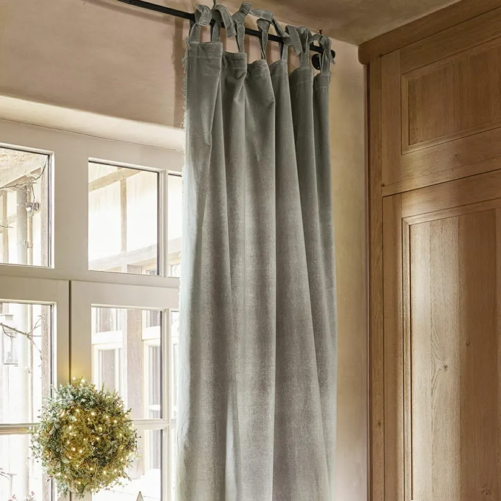 Das perfekte Accessoire für entspannte Stunden in geborgener Privatsphäre – dieser ansprechende Vorhang macht Ihr Zuhause zu einem besonders gemütlichen Ort. Er besteht aus weichem Baumwollsamt, ist blickdicht und zum Abdunkeln konzipiert. So eignet er sich bestens für das Schlafzimmer. Doch auch im Wohnzimmer können Sie sich damit so richtig einkuscheln, wenn es draußen dunkel und kalt ist. Und im Sommer schützt er vor allzuviel Wärme und sorgt dabei für eine gemütliche Lichtstimmung. Das hübsche Design ist mit reizenden Fransen sowie Bindebändern ausgestattet, die das Aufhängen ganz leicht machen. Zudem lässt sich so die Höhe leicht regulieren. Das angenehm dezente Accessoire harmoniert mit wirklich jedem Ambiente und ist ganz zeitlos – schön zum Beispiel zum Landhaus-Stil.