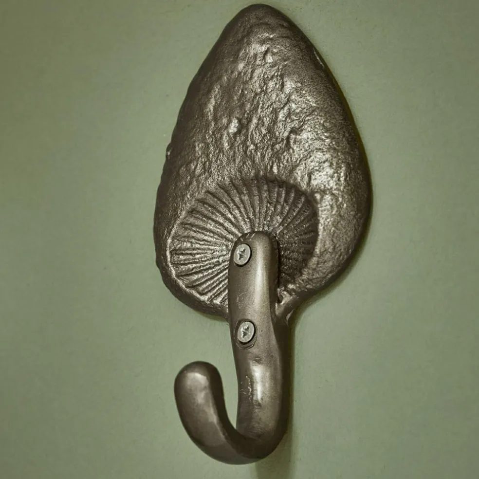 Fast wie kleine Waldwunder wirken diese drei Wandhaken in Pilzform – als hätte man sie direkt vom Waldboden gepflückt. Die plastische Oberfläche mit zarten Rillen und das warme Antikmessing-Finish verleihen ihnen eine besondere Tiefe und eine fast mystische Ausstrahlung. Sie bringen nicht nur Ordnung in Jacken, Taschen oder Schmuck, sondern auch ein gutes Stück Naturgefühl ins Zuhause. Besonders im Kinderzimmer entfalten sie ihre volle Wirkung: Dort regen sie die Fantasie an und laden ein zu Geschichten von Feen, Tieren und zauberhaften Wäldern. Doch auch im Flur oder Bad setzen sie charmante Akzente – mit einem Augenzwinkern und jeder Menge Stil.