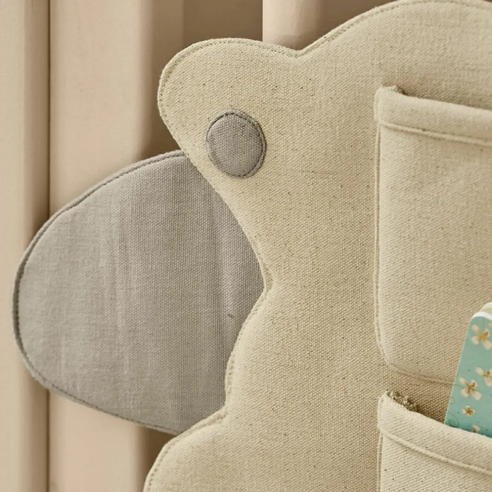 So schön kann Ordnung sein: Dieser Wandorganizer in Form eines Schafes ist nicht nur ein praktischer Helfer, sondern auch ein zauberhafter Blickfang an der Wand. Die vier großzügigen Taschen bieten Platz für alles, was kleinen Alltagshelden wichtig ist – vom Lieblingsbuch bis zur Stoffpuppe. Die gewebte Baumwollstruktur bringt eine natürliche Haptik ins Spiel, während die sanften Naturtöne für eine beruhigende Raumwirkung sorgen. Mit Schlaufen zum einfachen Befestigen versehen, lässt sich der Organizer flexibel am Bett, an Regalen oder der Wand anbringen. Eine charmante Lösung für ein liebevoll eingerichtetes Kinderreich.