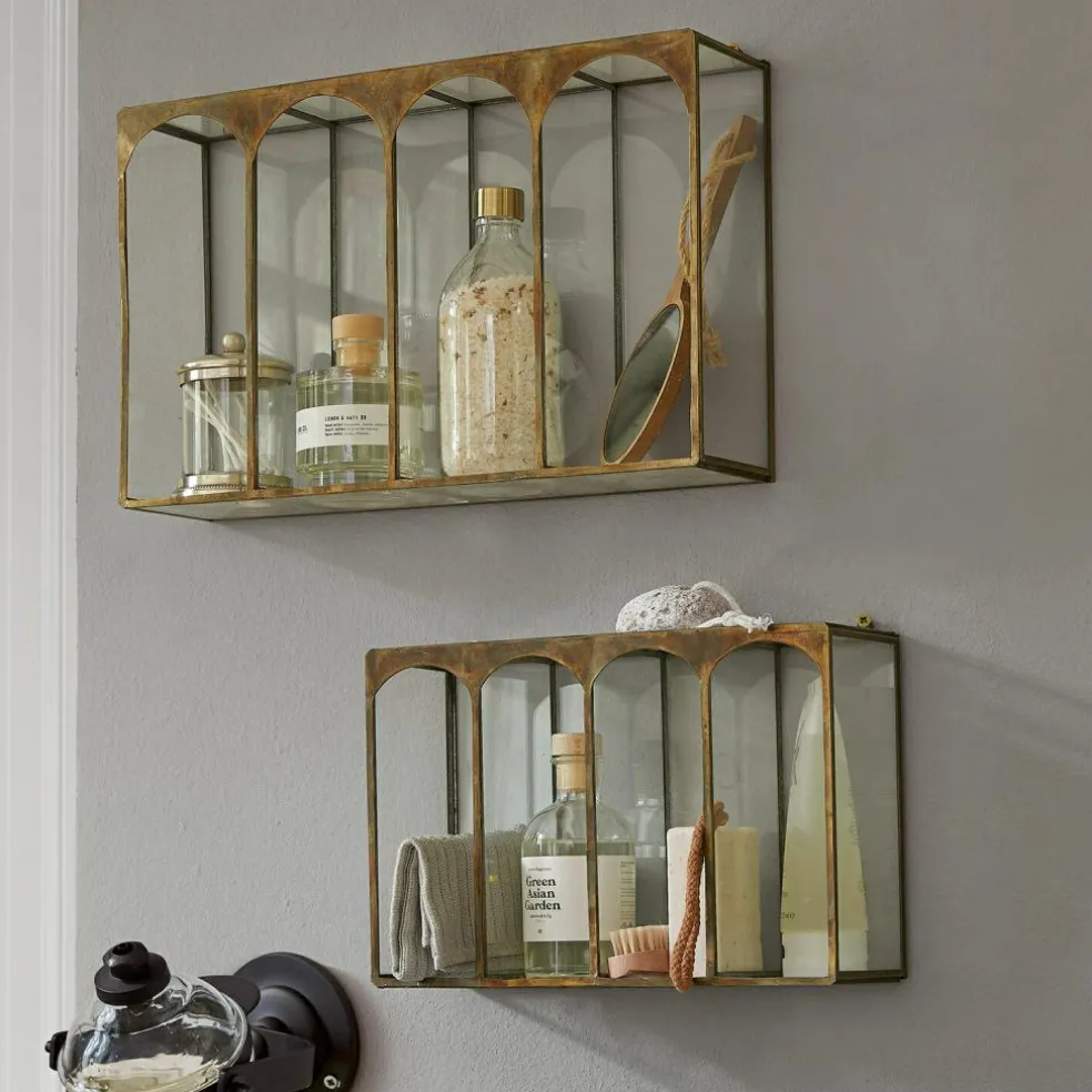 Dieses Wandregal 2er Set vereint industrielle Eleganz mit zeitlosem Design. Gefertigt aus robustem Eisen mit einem charmanten Antik-Finish und ergänzt durch stilvolle Glaseinsätze, bietet es nicht nur eine ästhetische Aufwertung für Ihre Wände, sondern auch funktionalen Stauraum. Die abgerundeten Bögen verleihen den Regalen eine ansprechende, moderne Note, die sie zu einem Blickfang in jedem Raum machen. Sie setzen einen ganz besonderen Akzent, der in Sachen Design auch voll im Trend liegt. Ob für Bücher, Pflanzen oder dekorative Accessoires – diese Regale sind vielseitig einsetzbar und setzen Ihre Lieblingsstücke perfekt in Szene.