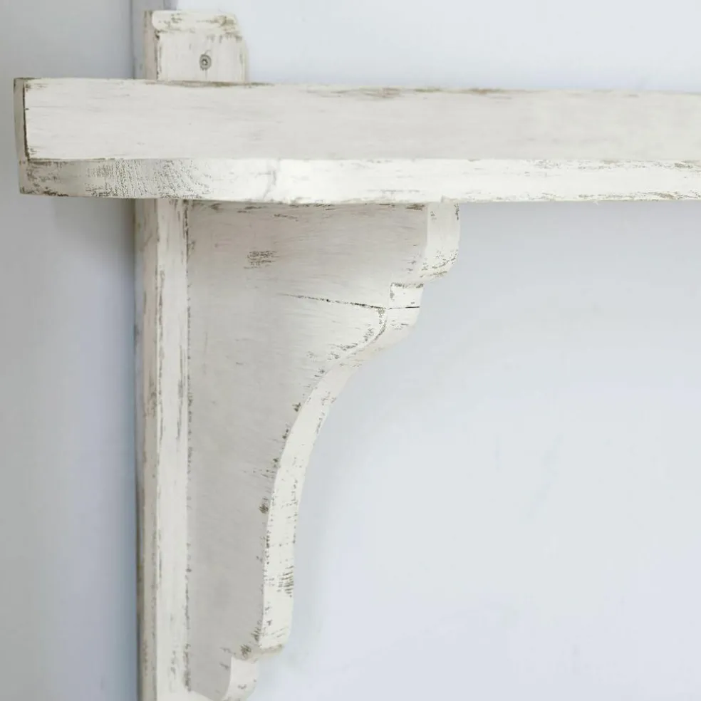 Das 2er-Set dieser Wandregale aus massivem Tannenholz bringt mit seinem charmanten Antik-Finish einen Hauch von Vintage in Ihr Zuhause. Die geschwungenen Träger erinnern an den klassischen Landhausstil und verleihen den Regalen eine besondere Eleganz. Die weiße, bewusst verwitterte Oberfläche sorgt für einen rustikalen Charakter, der jede Wand stilvoll aufwertet. Ob für dekorative Accessoires, Bücher oder Pflanzen – die Regale bieten sowohl Funktionalität als auch eine dekorative Lösung für viele Räume. Ein zeitloser Klassiker, der nicht nur praktischen Nutzen bietet, sondern auch optisch begeistert.