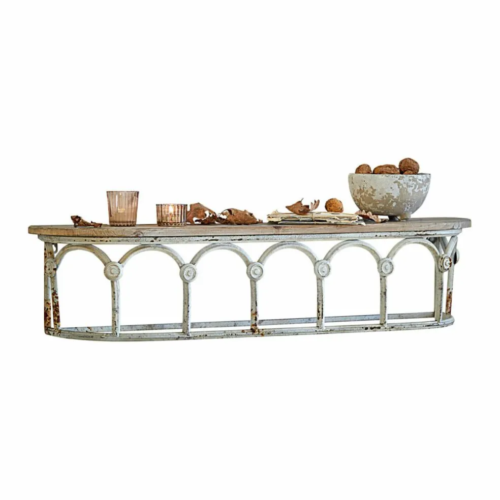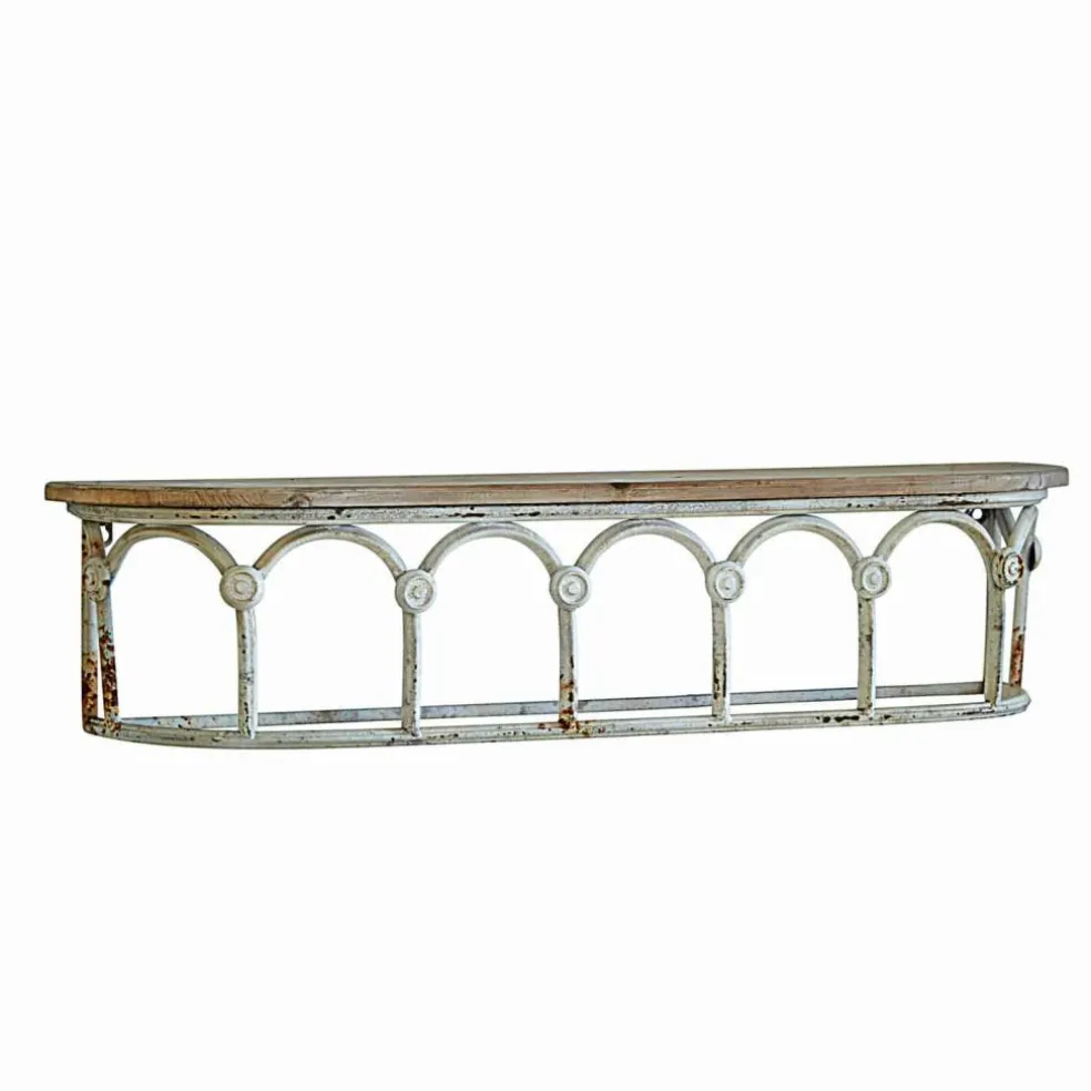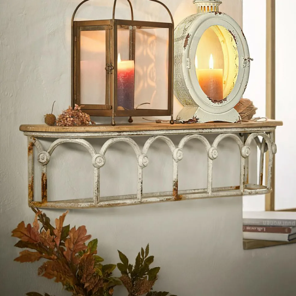 Ein Anblick, der seinesgleichen sucht: Dieses von Hand gefertigte Wandregal ist etwas für Liebhaber besonderer Wohnkultur. Das Schmuckstück wirkt, als hätte es durch historische Zeiten den Weg in Ihr Zuhause gefunden. Aus einer Epoche, in der Baukunst perfektioniert wurde. Hier verbinden sich mit Antik-Finish veredeltes Tannenholz mit langlebigem Eisen zu schönsten Formen. Praktisch, langlebig und vielseitig einsetzbar wird dieses Schmuckstück eine Zierde für Ihr schönes Zuhause sein und es um ein außergewöhnliches Highlight bereichern. Durch seine geringe Tiefe ist das Wandregal mühelos in jedem Raum unterzubringen – egal ob Flur oder im Gartenhaus.