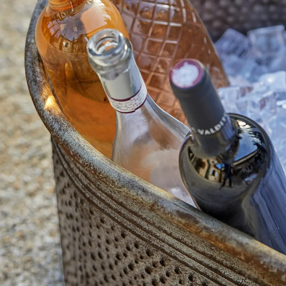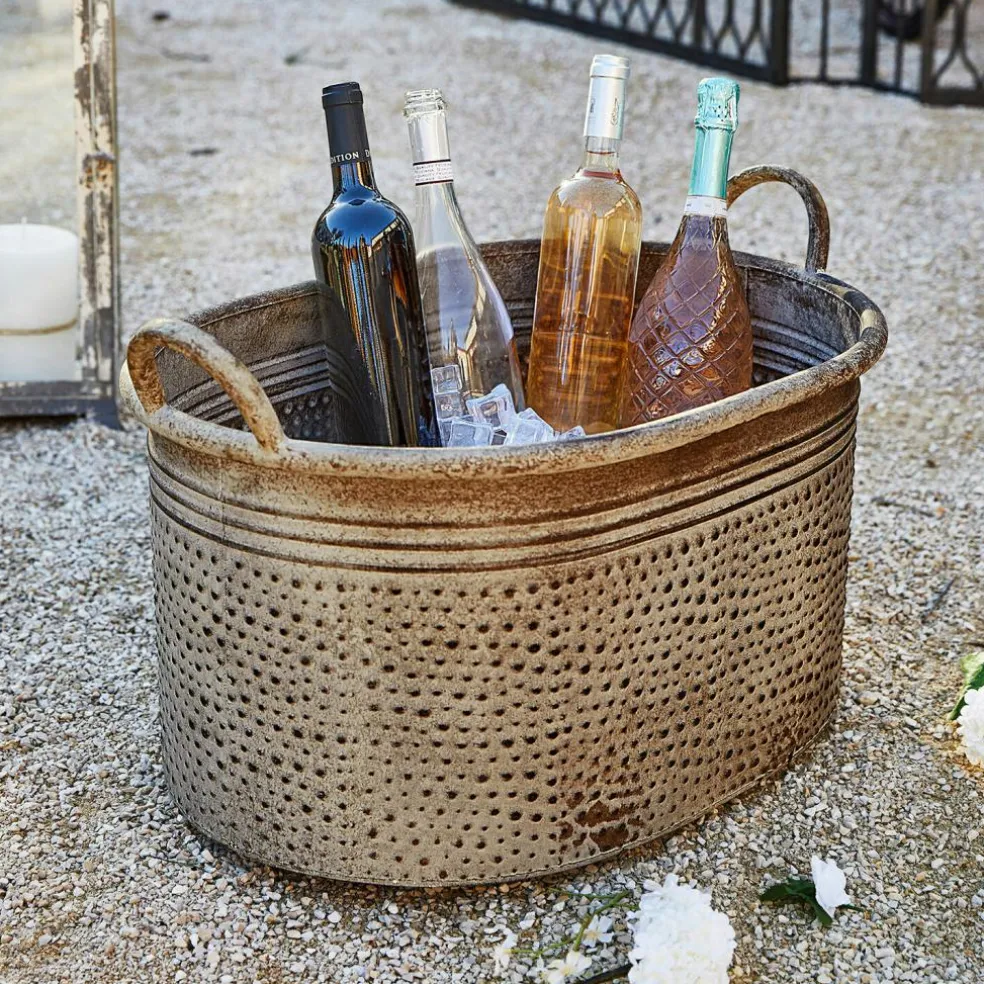Die antik-finierte Eisenwanne verbindet praktische Funktionalität mit rustikalem Charme. Ihre robuste Bauweise und die liebevoll gestalteten Noppen machen sie zu einem langlebigen und dekorativen Stück, das Stil in jeden Raum bringt. Sie ist geräumig genug, um als Pflanzenbehälter für große Gewächse zu dienen, und gleichzeitig ideal, um bei einer Gartenparty als innovativer Getränkekühler zu fungieren. Stellen Sie sich vor, wie diese Wanne, bepflanzt mit farbenfrohen Blumen oder gefüllt mit einer Auswahl an Wein und Champagner, zum zentralen Mittelpunkt Ihrer nächsten Feier wird und für bewundernde Blicke sorgt.