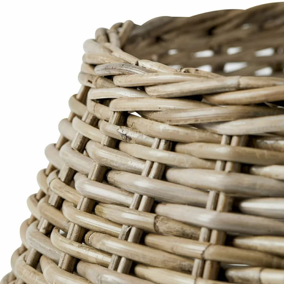 Einfach kurz den bunten Trockenblumenstrauß herausnehmen und den Korb mit duftenden, dunkelgrünen Tannenzweigen füllen. Oder gleich den kompletten Weihnachtsbaum hineinstellen. Und schon zaubert der Rattankorb weihnachtliche Stimmung herbei. Sie bekommen ihn in zwei Größen, sodass er garantiert um jeden Christbaumständer herum passt. Seine natürliche Anmutung macht ihn zum dekorativen Multitalent, da er sich mit Deko-Materialien in allen erdenklichen Farbstellungen und saisonalen Ausprägungen befüllen lässt. Hinzu kommen seine gleichmäßig von Hand geflochtene Struktur und die sich leicht verjüngende Form. Damit wird der Korb in Kombination mit seinen jeweiligen Inhalten zum ausdrucksstarken Deko-Ensemble für Ihr Zuhause. Aber er punktet nicht nur als von Hand erschaffenes Unikat, er macht auch in puncto Umweltfreundlichkeit von sich reden. Denn bei der Naturfaser Rattan handelt es sich genauer gesagt um die Lianen der Rotangpalme und damit um einen ständig nachwachsenden Rohstoff. Die hohe, langlebige Qualität lässt sich übrigens an den runden, glatten Fasern erkennen, die für diesen Korb verwendet wurden und aus deren natürlichem Farbverlauf sich die charmanten Unregelmäßigkeiten ergeben, die dieses Naturprodukt so einzigartig machen.