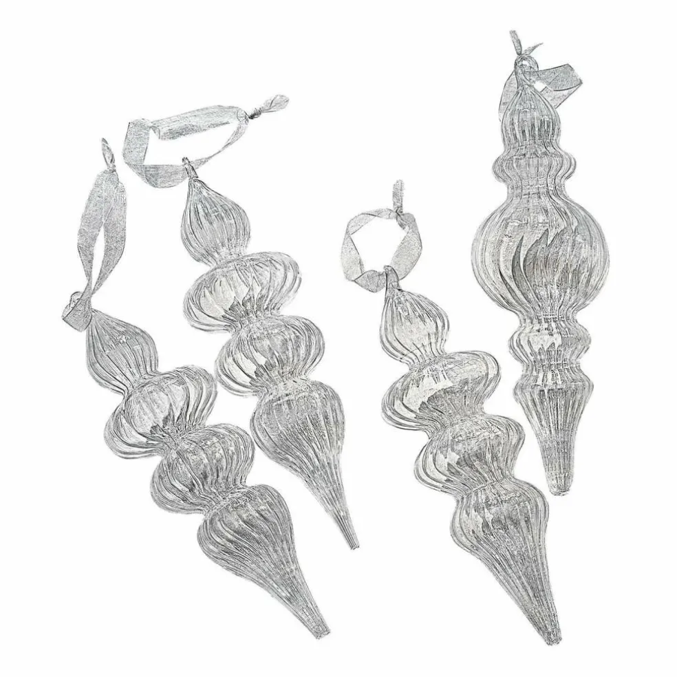 Der zauberhafte Weihnachtsschmuck im 4er Set bringt eine besondere Magie in Ihr Zuhause. Aus mundgeblasenem Glas gefertigt, begeistert jedes Ornament durch seine einzigartige Form und die sanfte, transparente Struktur. Das liebevoll gestaltete Design mit den filigranen Details spiegelt das kunstvolle Handwerk wider und setzt glamouröse Akzente an Ihrem Weihnachtsbaum. Die zarten Aufhängebänder ermöglichen eine mühelose und elegante Platzierung, sodass Ihr Baum in vollem Glanz erstrahlen kann. Diese edlen Glasornamente sind nicht nur dekorative Highlights, sondern auch ein Zeichen für Tradition und Qualität, die Ihre Festtage noch unvergesslicher machen.