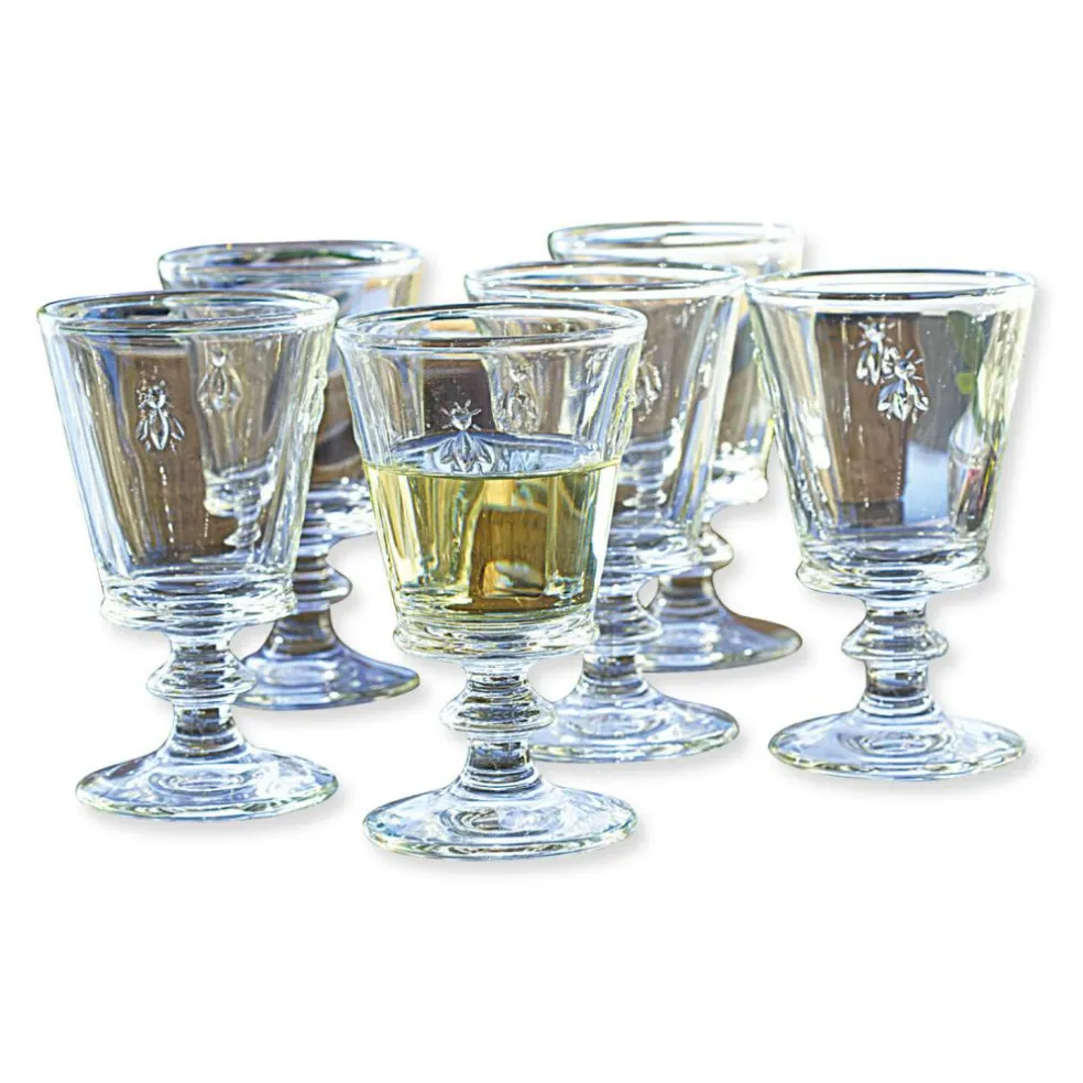Nehmen wir heute die guten Weingläser? Diese Frage stellte sich vielleicht noch zu Großmutters Zeiten. Aber mittlerweile sind fast alle Gläser alltagstauglich. Diese wunderschöne Weinglasserie ist es zumindest. Die robusten Gläser sind sogar spülmaschinentauglich. Somit ein Grund mehr, sich abends zum Feierabend ein schönes Gläschen Wein zu gönnen. Und auch wenn Sie als alltagstauglich beschrieben werden, so sind die sechs Qualitätsgläser mit dem quadratischen Rand doch auch dekorativ ein Blickfang. Dafür sorgt eine Biene, mit der jedes Glas als eingearbeitetes Symbol versehen ist. Das Wappentier Bonapartes spielt in der Heraldik in Frankreich eine große Rolle. Da liegt es nahe, dass die namenhafte Glasmanufaktur „La Rochère“ in Frankreich dieses traditionsreiche Wappenzeichen für diese schöne Glasserie aufgriff. Wir finden diese Weingläser besonders schön als Ergänzung zu den Wassergläsern im gleichen Design.