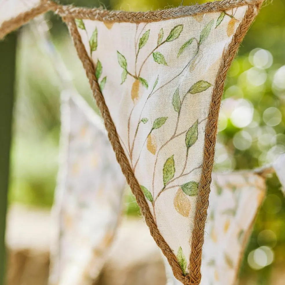 Bringen Sie die Leichtigkeit des Sommers in Ihr Zuhause! Diese Wimpelgirlande aus feinem Leinen, eingerahmt mit naturbelassener Jute, ist ein liebevolles Detail für besondere Orte. Die handgezeichnet wirkenden Zitronenmotive verleihen der Girlande eine spielerische und zugleich stilvolle Note, die besonders in Kinderzimmern, aber auch bei Feiern oder Gartenpartys für fröhliche Akzente sorgt. Robust und doch luftig leicht fügt sich diese Girlande mühelos in Ihr Dekor ein und versprüht eine charmante Natürlichkeit.