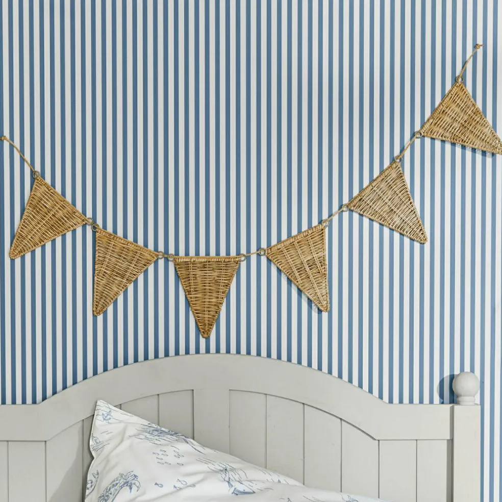 Verleihen Sie Ihren Räumen eine ganz besondere Note mit dieser außergewöhnlichen Wimpelgirlande aus geflochtenem Rattan. Während Wimpelgirlanden üblicherweise aus Stoff gefertigt sind, setzt dieses Modell auf den natürlichen Charme von Rattan und Jutekordeln. Die naturbelassenen Materialien schaffen eine stilvolle Verbindung von traditionellem Design und innovativen Materialien, die perfekt in jedes Kinderzimmer oder auf jede Feier passt. Egal, ob für Geburtstagsfeiern, sommerliche Gartenfeste oder einfach als tägliches Dekorelement – diese Girlande bringt einen Hauch von Natürlichkeit und Originalität in jeden Raum.