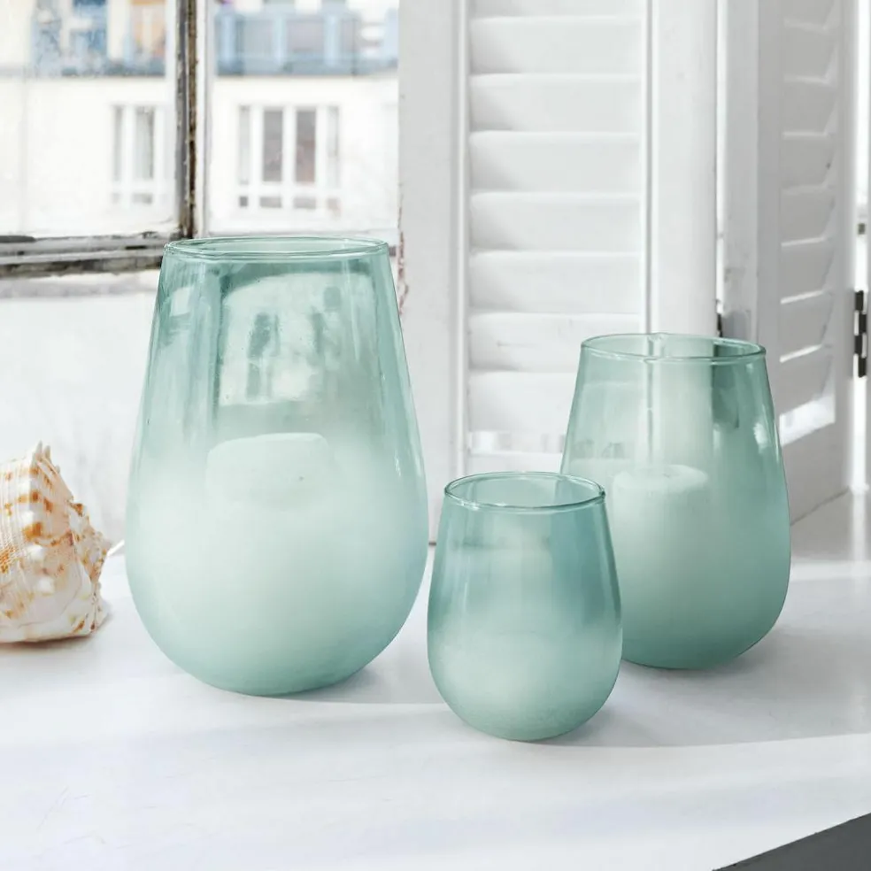 Mit diesem dekorativen Trio bringen Sie den Gartentisch, Kaminsims oder die Wohnzimmerkonsole zum Leuchten. Das unaufdringliche Design punktet mit einer klaren Formsprache, die sich nahtlos in Ihr Einrichtungskonzept einfügt. Jedes Stück wird nach uralter Tradition mundgeblasen und weist dadurch natürliche Unregelmäßigkeiten auf, die es zu einem echten Unikat machen. Die leichte Tönung sorgt für eine besonders angenehme und gedämpfte Lichtstimmung. Dazu passt das leichte Milchglas-Finish im unteren Bereich hervorragend. Selbstverständlich können Sie die Windlichter auch einzeln nutzen, beispielsweise das Kleine im Schlafzimmer, das Mittlere auf dem Couchtisch und das große Windlicht auf der Küchenkonsole.