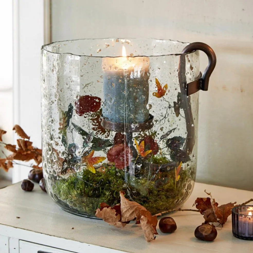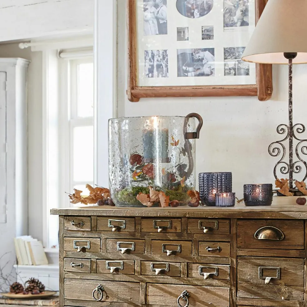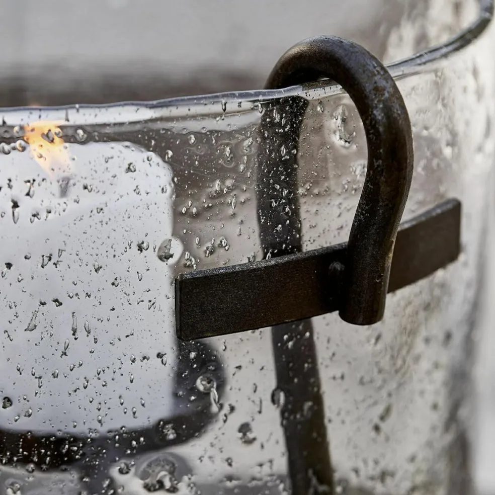 Ein stimmungsvolles Leuchtobjekt für jedes Ambiente. Der Look ist einzigartig: In das mundgeblasene Glas werden zusätzlich kleine Rußpartikel eingearbeitet. Und wenn noch Kerzenschein ins Spiel kommt, entsteht eine magische Wirkung. Praktisch: Der herausnehmbare Einsatz aus geschmiedetem Eisen macht das Einsetzen und Anzünden der Teelichter einfach. Diese sind jedoch im Lieferumfang nicht enthalten. Ein wunderschönes Tischaccessoire für das ganze Jahr – ob für gesellige Sommerabende auf der Terrasse, für romantische Lichtakzente in den Wintermonaten oder zur Weihnachtszeit. Jedes Windlicht ist ein unvergleichliches Unikat, denn es fällt immer etwas unterschiedlich aus.