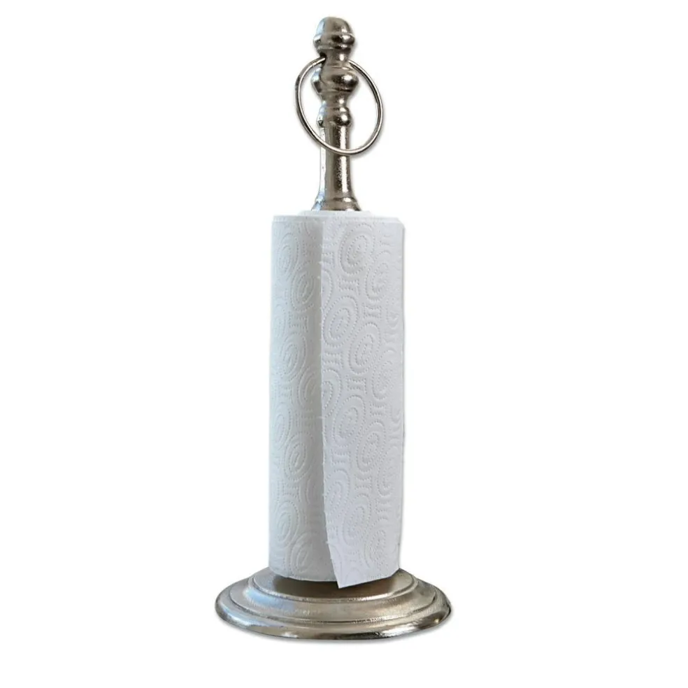 Dieses Schmuckstück ist der Beweis dafür, dass auch Küchenrollenhalter mit einem eleganten Design aufwarten können. Unser formschönes Modell wird aus reinem Aluminium gefertigt und wirkt durch das Antiksilber-Finish besonders attraktiv. Ein charmanter Tragering rundet den hochwertigen Gesamteindruck ab.