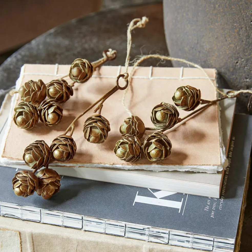 Ein Hauch von Wald und Winterzauber – dieses dreiteilige Anhänger-Set verwandelt selbst kleine Dekoelemente in stimmungsvolle Hingucker. Die filigranen Zapfen wirken wie kleine Schätze aus der Natur, eingefangen in einem warmen Antikgold-Ton, der ihnen eine edle Patina verleiht. Ob am Tannenzweig, an einem weihnachtlichen Geschenk oder als Blickfang an einem Wandhaken – mit der beiliegenden Juteschnur lassen sich die Anhänger im Handumdrehen stilvoll inszenieren. Ihr natürliches Design harmoniert dabei wunderbar mit rustikalen, klassischen und nordischen Wohnstilen.