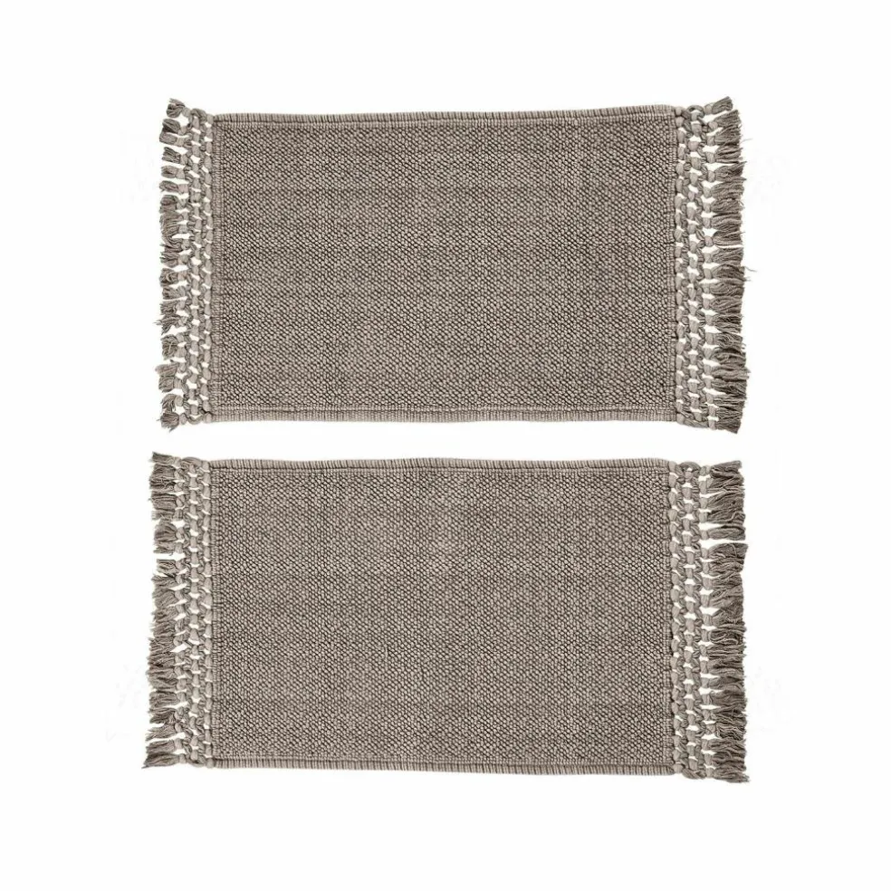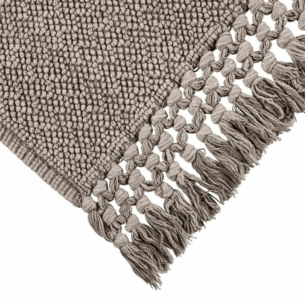Ein Hauch von Textilpoesie für Ihre Füße: Dieses Badematten-Set aus reiner Baumwolle bringt nicht nur Komfort, sondern auch Charakter in Ihr Badezimmer. Die fein gewebte Struktur sorgt für eine sanfte Haptik, während das dezente Rautenmuster eine charmante Tiefe erzeugt. An beiden Enden betonen aufwendig geknüpfte Fransen in Makramee-Optik die handwerkliche Wirkung und geben dem Design eine verspielte Note. Das helle Naturweiß harmoniert wunderbar mit Holz, Leinen und anderen Naturmaterialien – perfekt für einen warmen, ruhigen Stil mit einem Hauch von Boho.