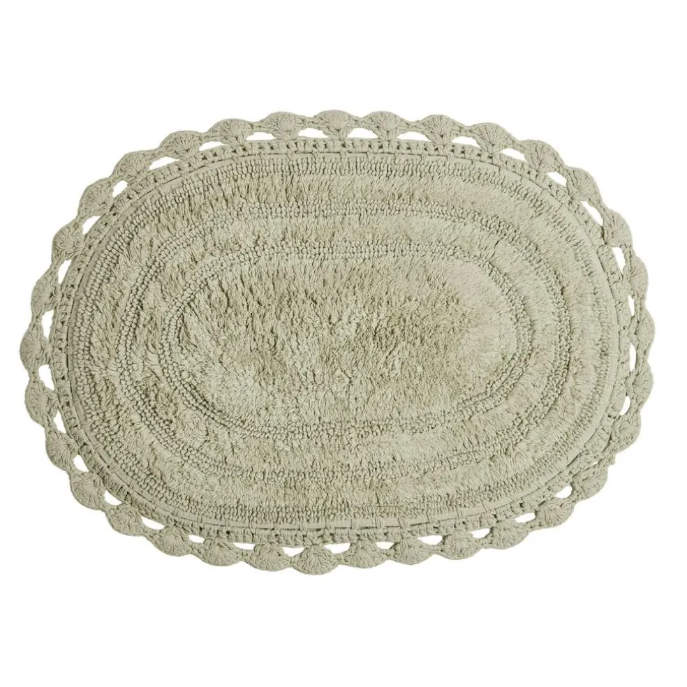 Diese Badematte aus reiner Baumwolle verbindet behagliche Weichheit mit einem charmanten, handwerklichen Look. Das ovale Format wirkt gefällig, die dekorative Häkelkante setzt einen feinen Akzent, der an klassische Textilkunst erinnert. Die getuftete Oberfläche nimmt Feuchtigkeit zuverlässig auf und schenkt ein angenehm warmes Gefühl unter den Füßen. Der dezente Naturton fügt sich mühelos in entspannte Badwelten ein – ob neben der freistehenden Wanne oder vor dem Waschtisch. Wer sein Bad mit einem kleinen Detail spürbar gemütlicher machen möchte, liegt hier goldrichtig: auspacken, auslegen, genießen.