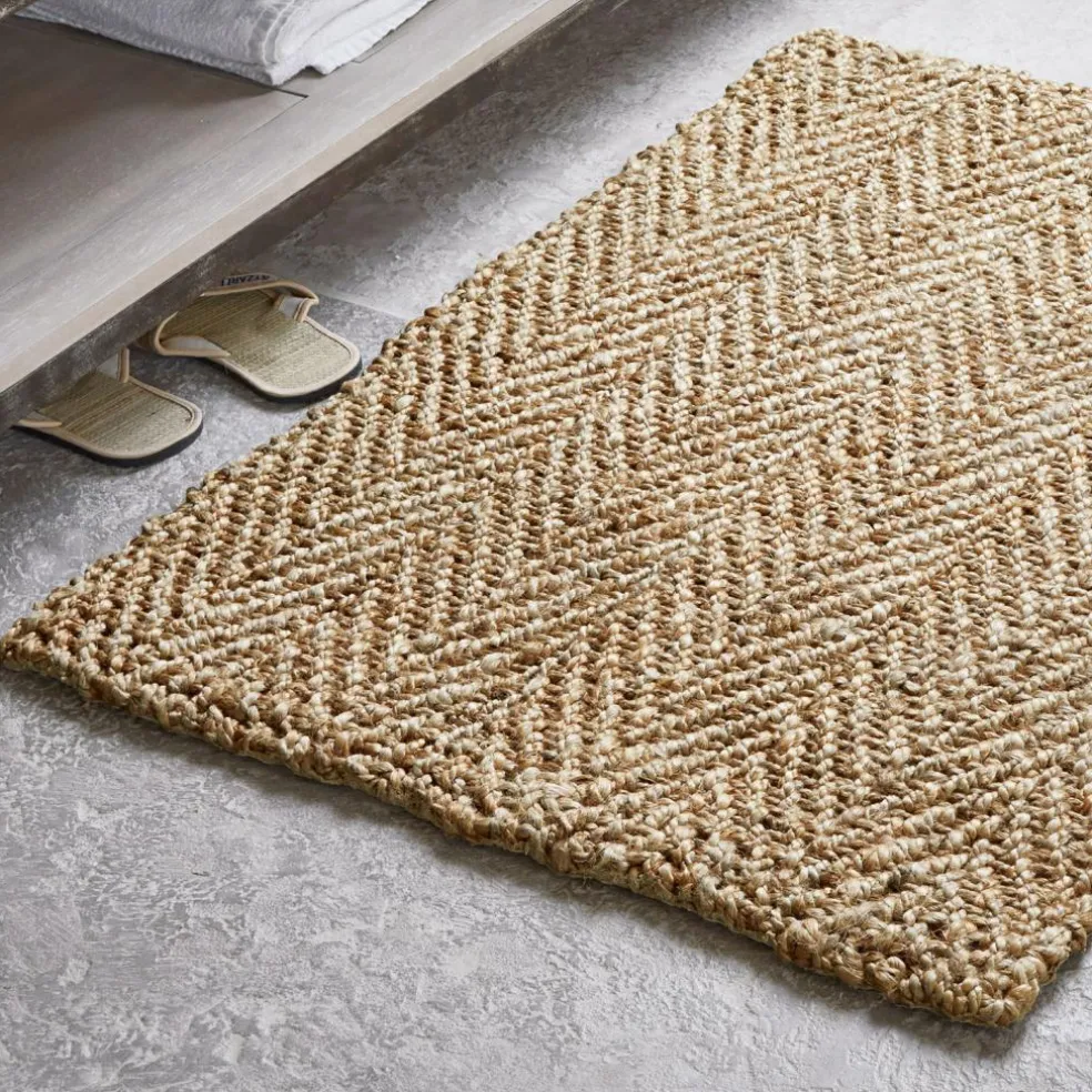 Bäder dienen heute nicht nur praktischem Nutzen, sie sind auch perfekte Wohlfühloasen, in denen man sich gerne etwas länger aufhält. Dabei schaffen Sie mit Grünpflanzen, Massivholzmöbeln und natürlichen Accessoires eine besonders gemütliche Atmosphäre. Auch dieser hochwertige Badteppich, der aus reinem Jutegarn gefertigt ist, gehört unbedingt dazu. Entdecken Sie die umweltfreundliche Qualität für Ihr Zuhause: Die nachwachsende Faser ist langlebig, robust und unempfindlich gegenüber Schmutz und Wasser. Kleine Farbveränderungen sind typisch für das Naturprodukt und sorgen für eine lebendige Optik. Das klassische Fischgrätmuster gibt der Badematte die attraktive Struktur – und Ihren Füßen einen herrlich angenehmen Massage-Effekt. Damit der Vorleger seine natürlich schöne Anmutung bewahrt, sind die Kanten ganz schlicht versäumt. Ein wirkungsvoller Wohnakzent, der sich wunderbar mit warmen Holzböden, aber auch kühlen Beton- und Fliesenböden verträgt. Mit einer rutschfesten Latexbeschichtung auf der Unterseite behält die Badematte auch auf Dauer ihren gewünschten Platz.