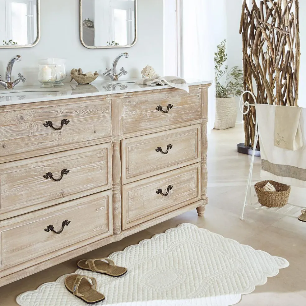 Die simpelsten Dinge können die Schönsten sein. Das trifft definitiv bei dieser charmanten Badematte zu. Sie wird aus reiner Baumwolle gewebt und großzügig wattiert, damit man sich auch barfuß darauf wohl fühlt. Klassische Formen und Muster unterstreichen das natürliche Design.