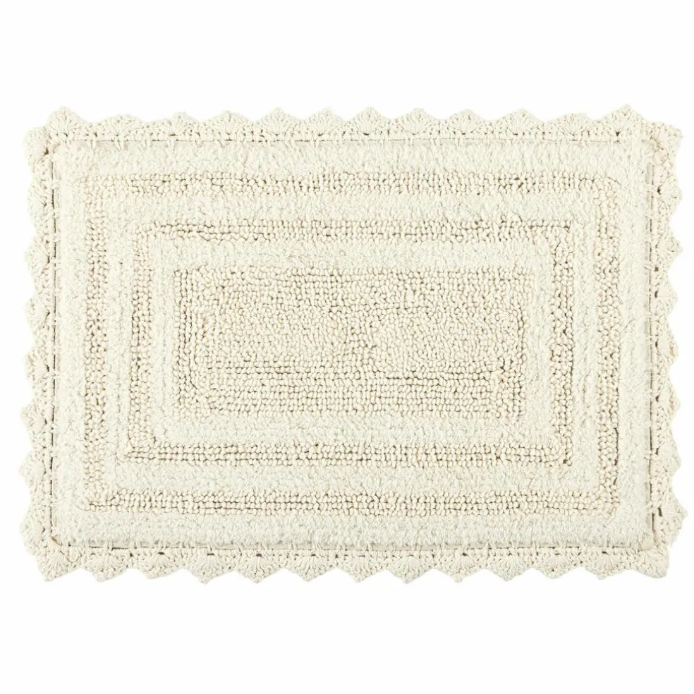 Diese Badematte bringt Stil und Komfort in Ihr Zuhause. Die feine Kombination aus Frottee- und getufteten Streifen verleiht der Oberfläche ein besonderes Spiel von Struktur und Muster, das sowohl funktional als auch dekorativ begeistert. Der umhäkelte Rand zeugt von einer besonderen Liebe zum Detail und verleiht der Matte einen charmanten, handwerklichen Charakter. Hergestellt aus reiner Baumwolle, bietet sie eine weiche, angenehme Haptik, die Ihre Füße verwöhnt. Ihre helle, natürliche Farbgebung fügt sich mühelos in jedes Badezimmer ein und schafft eine beruhigende Atmosphäre. Ein wahrer Blickfang, der nicht nur praktisch, sondern auch stilvoll ist.