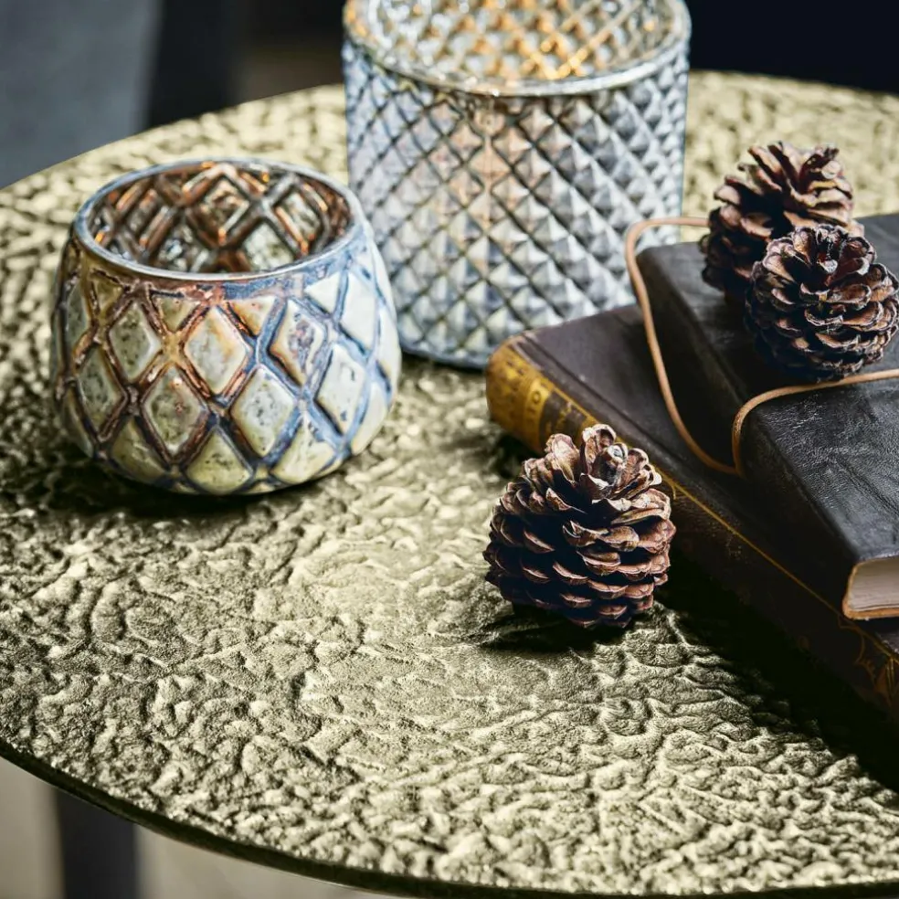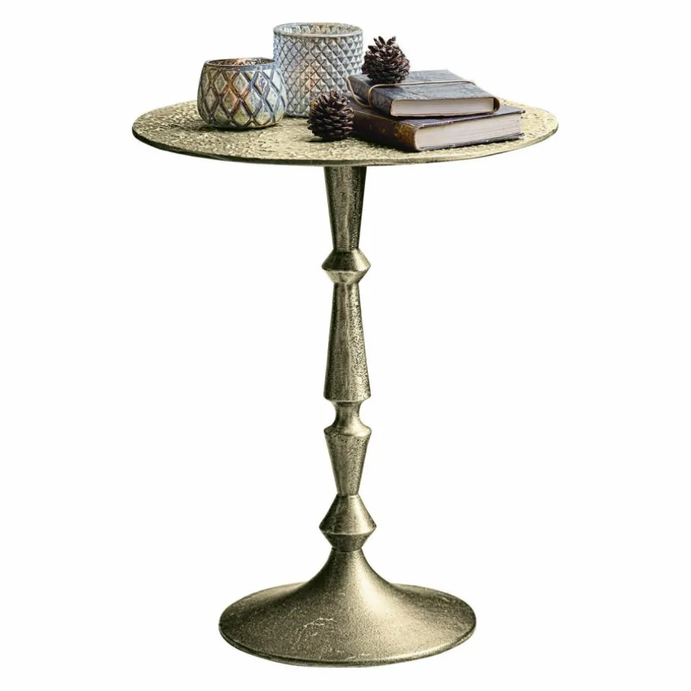 Bereichern Sie Ihr Zuhause mit dem einzigartigen Charme dieses charmanten Beistelltischs aus gealtertem Messing: Dieser kleine Tisch ist eine wahre Augenweide mit seiner unebenen runden Tischplatte und dem aufwendig gearbeiteten Fuß, der an den Industrial Look erinnert. Gleichzeitig fügt er sich harmonisch in klassisch elegante Wohneinrichtungen ein. Ob als stilvoller Nachttisch, praktischer Beistelltisch oder elegante Ablage im Flur – das Schmuckstück ist ein wahres Multitalent. Handgefertigt mit viel Detailliebe gefertigt, glänzt er durch seinen wunderschönen Antik-Look.