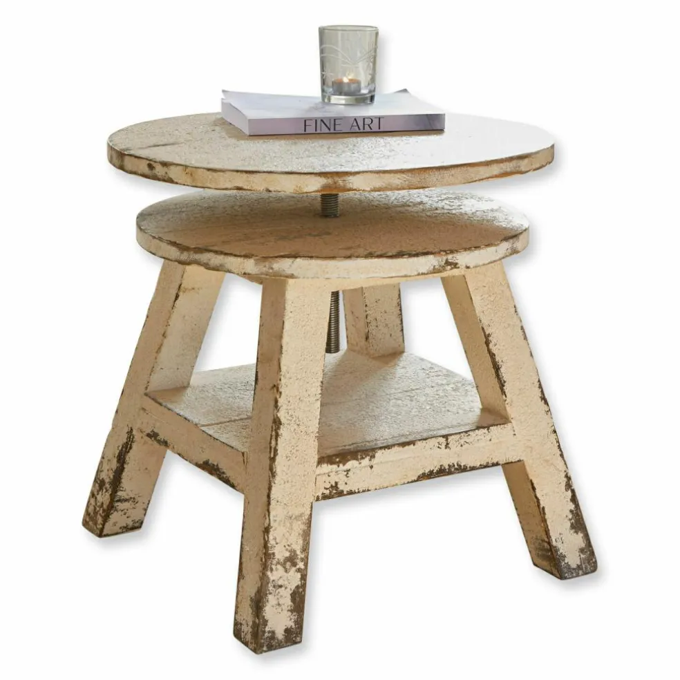 Dieser Beistelltisch könnte direkt von einem verträumten, rosenumrankten Cottage zwischen grünen Wiesen und Wäldern stammen. Mit Rücksicht auf die Natur wurde er nachhaltig aus wiederaufbereitetem Kiefernholz gefertigt, das ihm das besondere Etwas verleiht. Das Holz ist unbehandelt und strahlt dabei eine besondere Natürlichkeit aus. Hinzu kommt ein ungewöhnlicher Clou: Das schicke Landhaus-Möbel bietet eine höhenverstellbare, zweite Platte – und so mehr Ablagefläche. Dank seines zeitlos schönen Designs passt er in viele Räume und zu vielen Wohnstilen. Er macht sich im romantisch eingerichteten Wohnzimmer ebenso dekorativ wie in einer märchenhaft verwunschenen Küche oder im minimalistischen Flur. Egal wo, er ist zu allem bereit: Sie können nützliche Utensilien in der Küche auf ihm abstellen, Flaschen darauf präsentieren oder ihn einfach kreativ dekorieren. Ihrer Fantasie sind keine Grenzen gesetzt. Holen Sie sich mit diesem charmanten Stück etwas Cottage-Flair nach Hause.