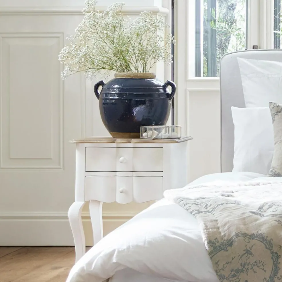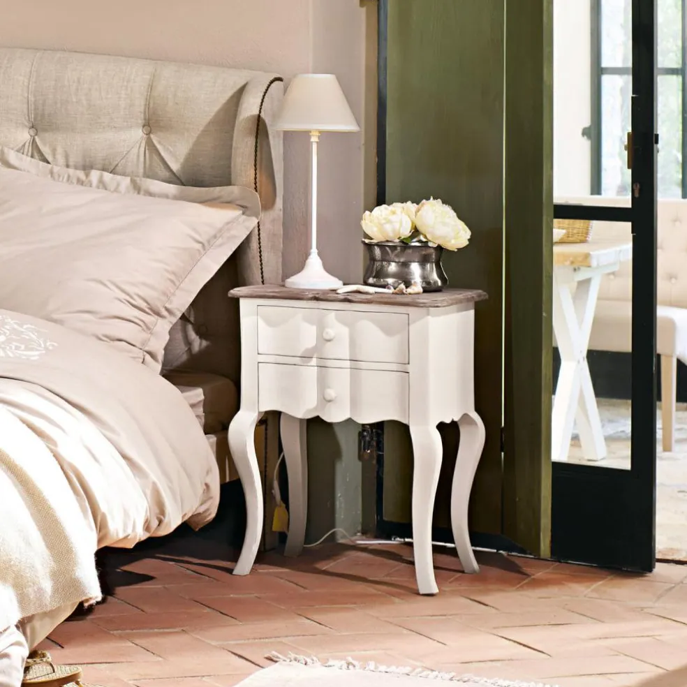 Der zweifarbige Beistelltisch aus stabilem Mangoholz punktet mit einer naturbelassenen Platte und einer sanft geschwungenen Unterkonstruktion in charmantem Antikweiß. Beim Ordnung halten helfen zwei Schübe. Der absolute Clou und garantierte Hingucker ist jedoch der herausgearbeitete Mittelteil, der den Tisch von oben beinahe wie eine Schäfchenwolke aussehen lässt. Unser Tipp: Nutzen Sie den Beistelltisch auch als Nachttisch– rechts und links von Ihrem Bett.