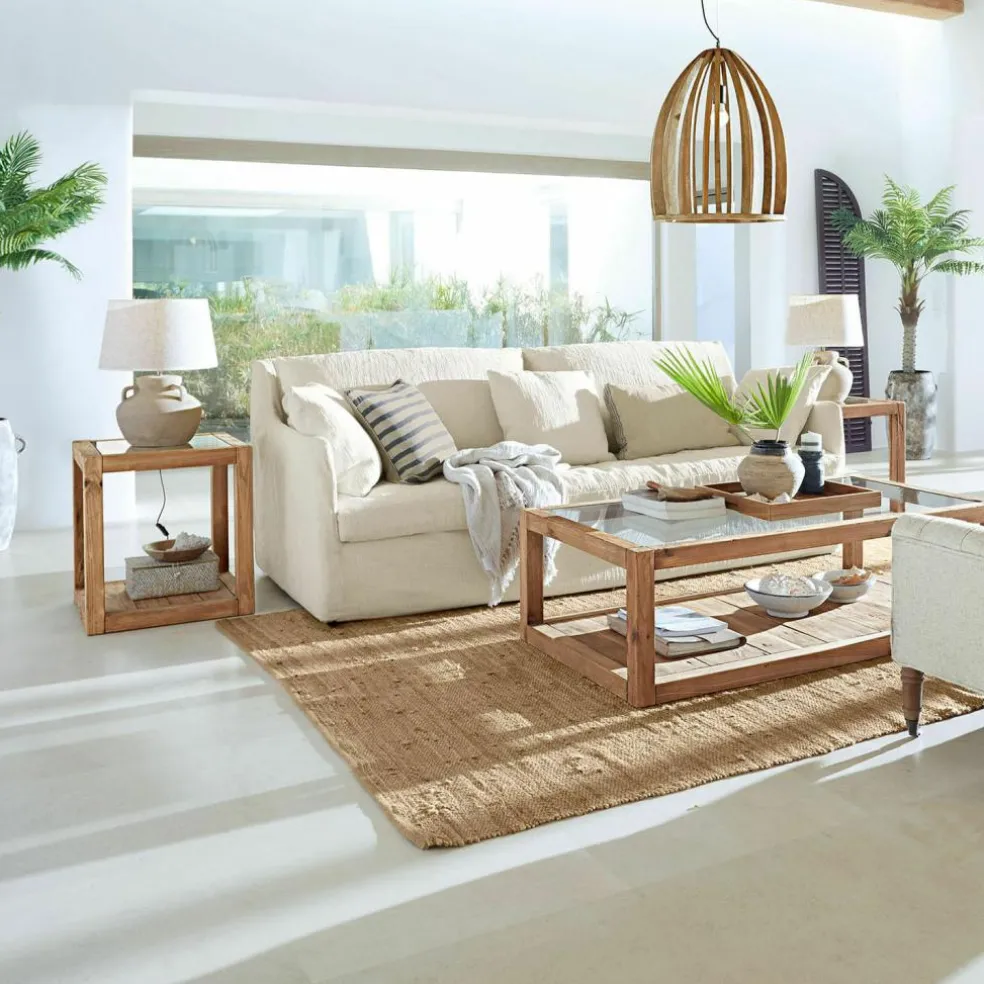 Mit seinem Mix aus wiederaufbereitete Kiefernholz und einer klaren Glasplatte bringt dieser Beistelltisch eine harmonische Kombination aus natürlicher Wärme und moderner Leichtigkeit in Ihr Zuhause. Die sichtbare, lebendige Maserung des Holzes verleiht ihm einen rustikalen Charakter, der durch die klaren Linien der Glasplatte stilvoll kontrastiert wird. Die untere Ablage bietet zusätzlichen Stauraum – perfekt für Zeitschriften, Bücher oder Dekoration. Ob im Wohnzimmer oder als Nachttisch im Schlafzimmer, dieser Tisch passt sich jedem Ambiente an und setzt dabei einen charmanten Akzent.
