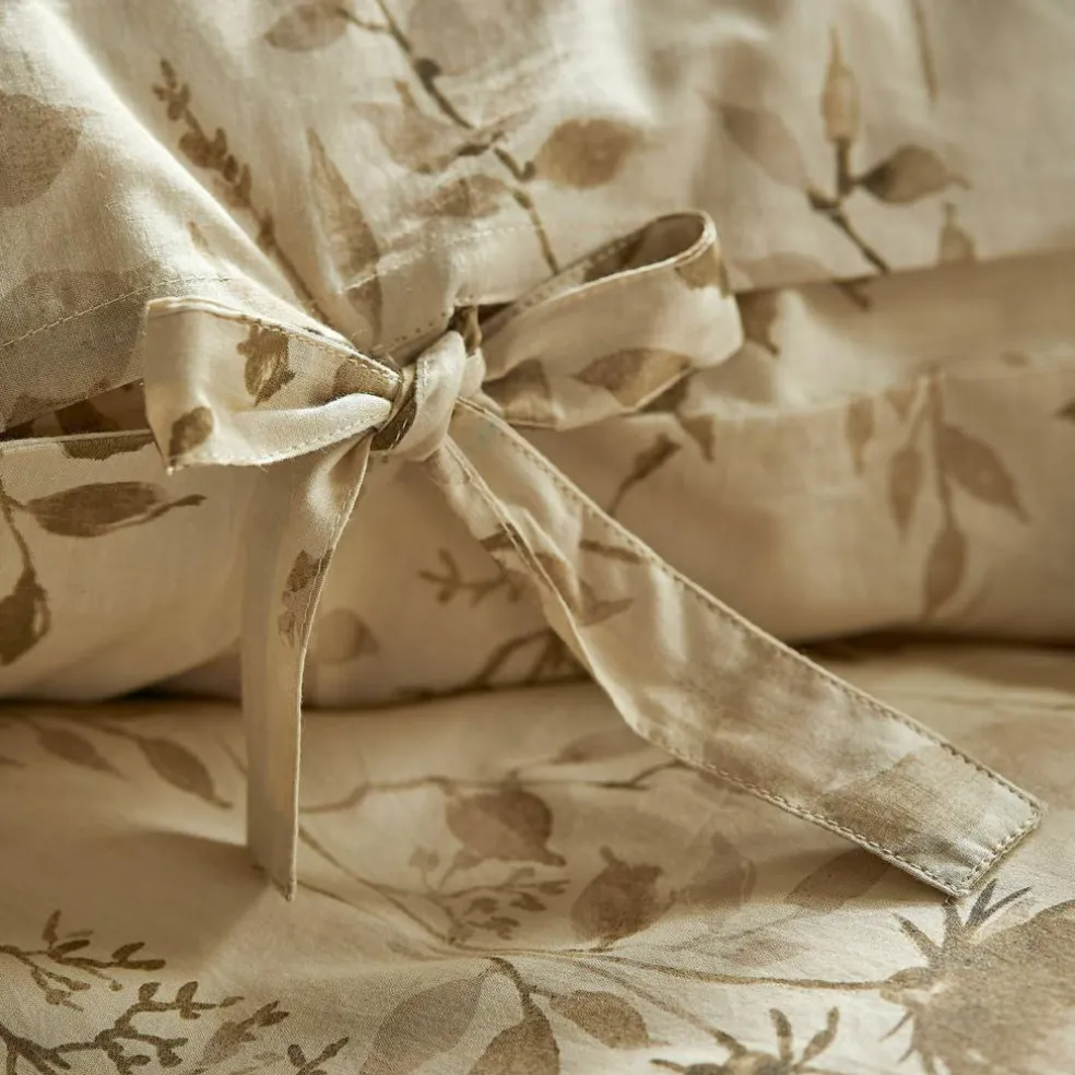 Verwandeln Sie Ihr Schlafzimmer in eine Oase der Ruhe und Schönheit mit dieser exquisiten Bettwäsche aus 100% Baumwolle. Das feine, florale Muster in sanften Naturtönen strahlt eine zeitlose Eleganz aus, die jeden Raum aufwertet. Die weiche, atmungsaktive Baumwolle schmiegt sich sanft an Ihre Haut und sorgt für erholsame Nächte voller Komfort. Die liebevoll gestalteten Bindebänder verleihen der Bettwäsche einen charmanten, handgemachten Look, der Ihre Schlafumgebung noch gemütlicher macht. Diese Bettwäsche ist nicht nur ein optisches Highlight, sondern auch pflegeleicht und langlebig, sodass Sie lange Freude daran haben werden.