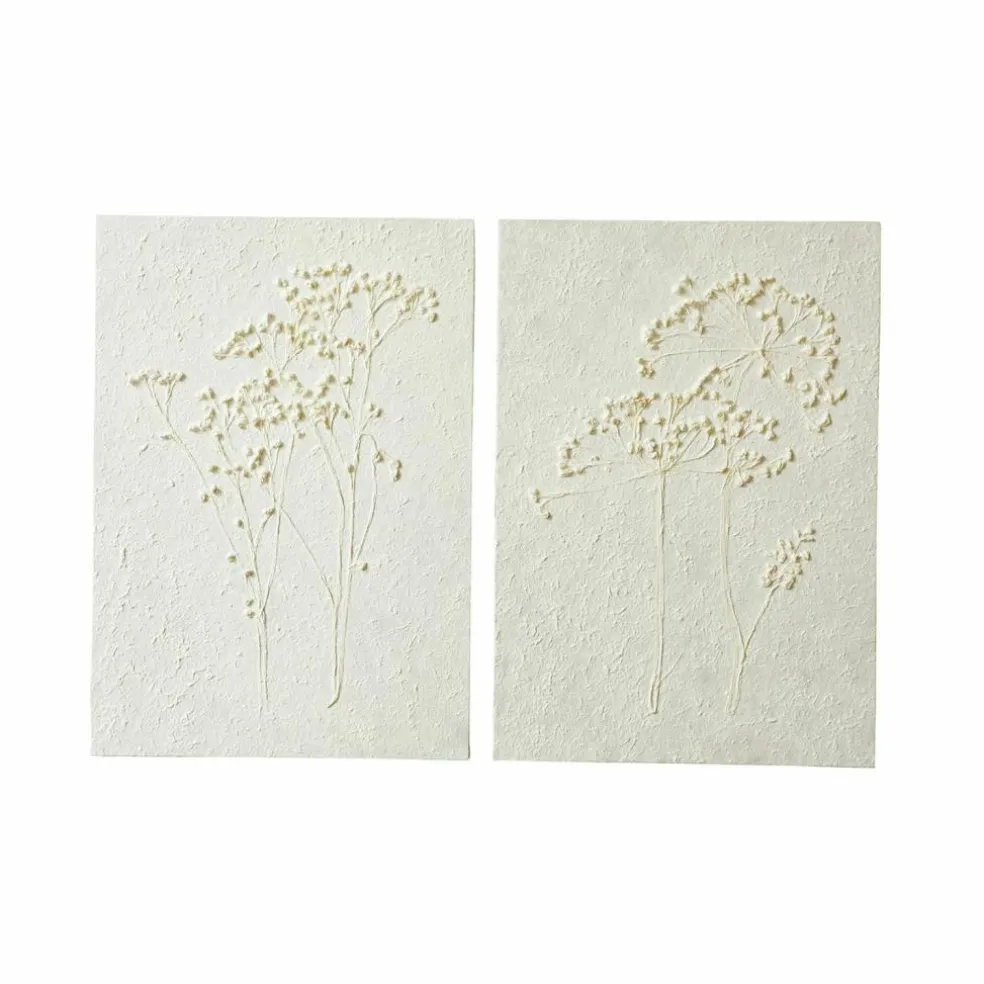 Das 2er Set dieser kunstvollen Wandbilder bringt Natur und Kunst in perfekter Harmonie zusammen. Die Basis besteht aus hochwertiger Baumwolle, deren Fasern mit einer schlichten weißen Farbe überzogen sind, was den Bildern eine dezente und zeitlose Eleganz verleiht. In die Struktur sind echte Trockenblumen eingefügt, die sorgfältig und liebevoll arrangiert wurden, um ein organisches und gleichzeitig ästhetisches Bild zu schaffen. Jedes Bild wird auf einem stabilen Holzrahmen präsentiert, der nicht nur für eine lange Lebensdauer sorgt, sondern auch eine einfache und sichere Anbringung ermöglicht. Diese einzigartigen Kunstwerke verleihen Ihrem Zuhause eine ruhige und natürliche Atmosphäre, die durch ihre Schlichtheit besticht und dennoch jeden Raum aufwertet.