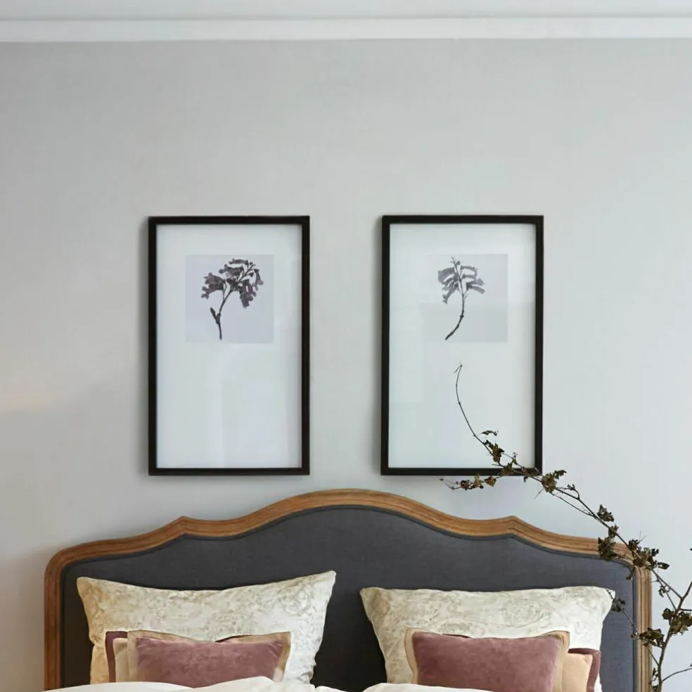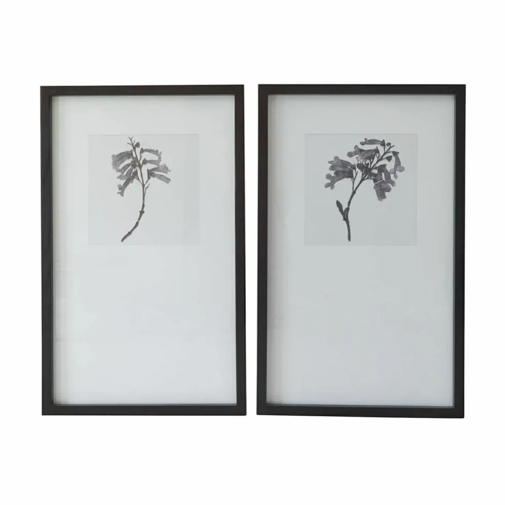 Zwei filigrane Blütenzweige, eingefangen in sanftem Schwarz auf reinem Weiß – dieses Bild-Set strahlt eine fast poetische Stille aus. Die botanischen Motive wirken wie aus einem alten Herbarium entnommen, jedes Detail fein herausgearbeitet und dennoch bewusst reduziert. Der breite Passepartout-Rand gibt den Zeichnungen Raum zum Atmen, während die schlanken schwarzen Rahmen die Komposition edel vollenden. Ob über der Kommode, im Flur oder als Ruhepol im Schlafzimmer – dieses Duo bringt die Schönheit der Natur mit moderner Zurückhaltung in Ihr Zuhause.
