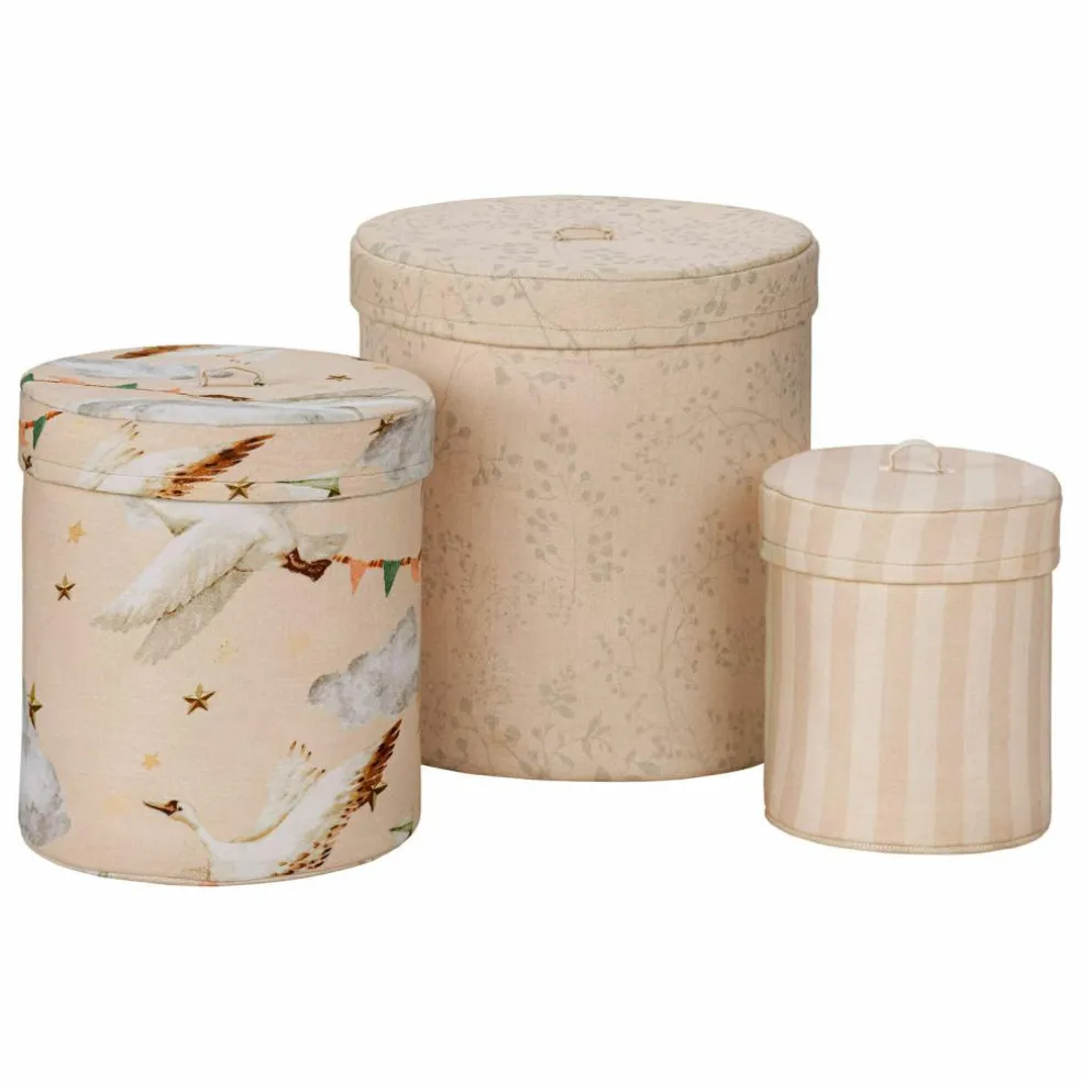 Dieses wunderschöne Box 3er Set verleiht Ihrem Zuhause einen Hauch von Eleganz und Ordnung. Die Boxen sind mit einem weichen Musselin-Bezug versehen, der nicht nur eine angenehme Haptik bietet, sondern auch durch die sanften Farben und zarten Prints besticht. Ideal für das Kinderzimmer, bringen die Boxen eine ruhige und stilvolle Atmosphäre. Nutzen Sie die Boxen zur Aufbewahrung von Spielzeug, Kleidung oder kleinen Schätzen und genießen Sie die Kombination aus Funktionalität und dekorativem Design. Jede Box bietet ausreichend Stauraum und ist ein echter Hingucker in jedem Raum.
