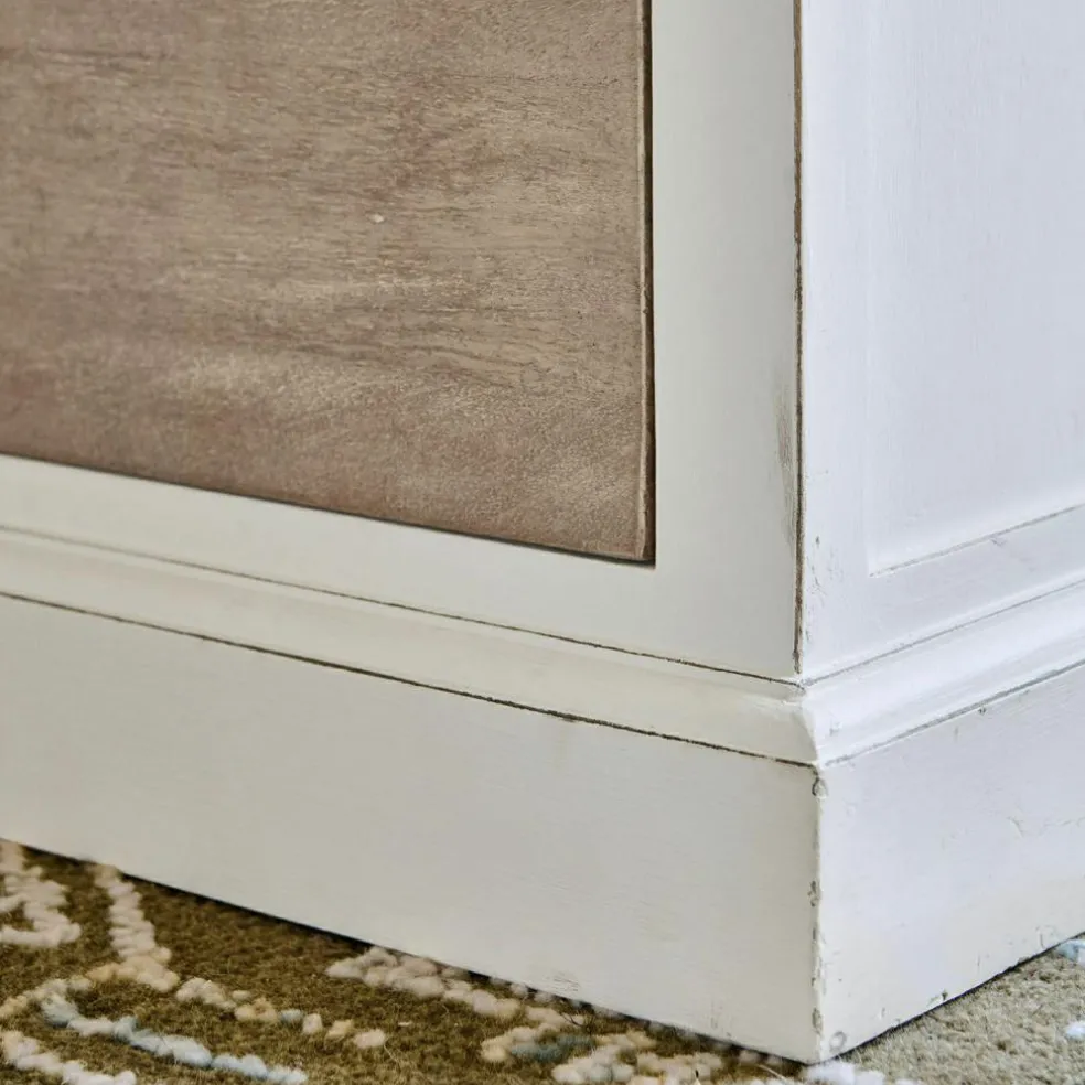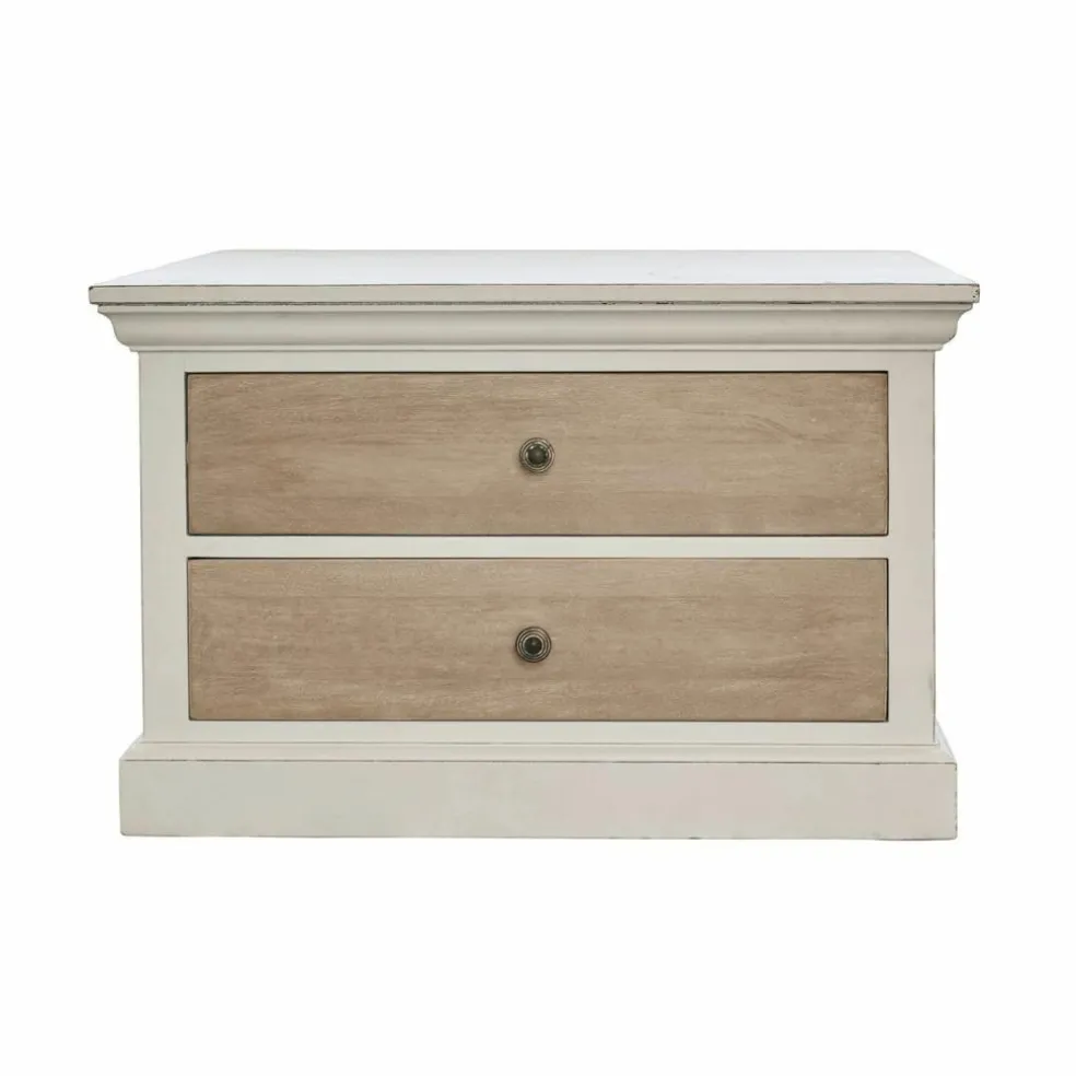 Ein Möbelstück, das Charakter beweist – dieser Couchtisch vereint Form und Funktion auf ganz eigene Weise. Die klare Linienführung trifft auf liebevolle Details im Landhausstil. Während die eine Seite mit zwei tiefen Schubladen Stauraum für alles Wichtige bietet, lassen sich auf der gegenüberliegenden Seite durch die Glastüren hübsche Accessoires inszenieren. Das Zusammenspiel aus antikweißer Lackierung und den leicht gekälkten Holzfronten erzeugt eine sanfte Spannung zwischen rustikalem Flair und wohnlicher Eleganz. Ein Tisch, der nicht nur praktisch, sondern auch ein Blickfang ist – vom ersten bis zum letzten Kaffee.