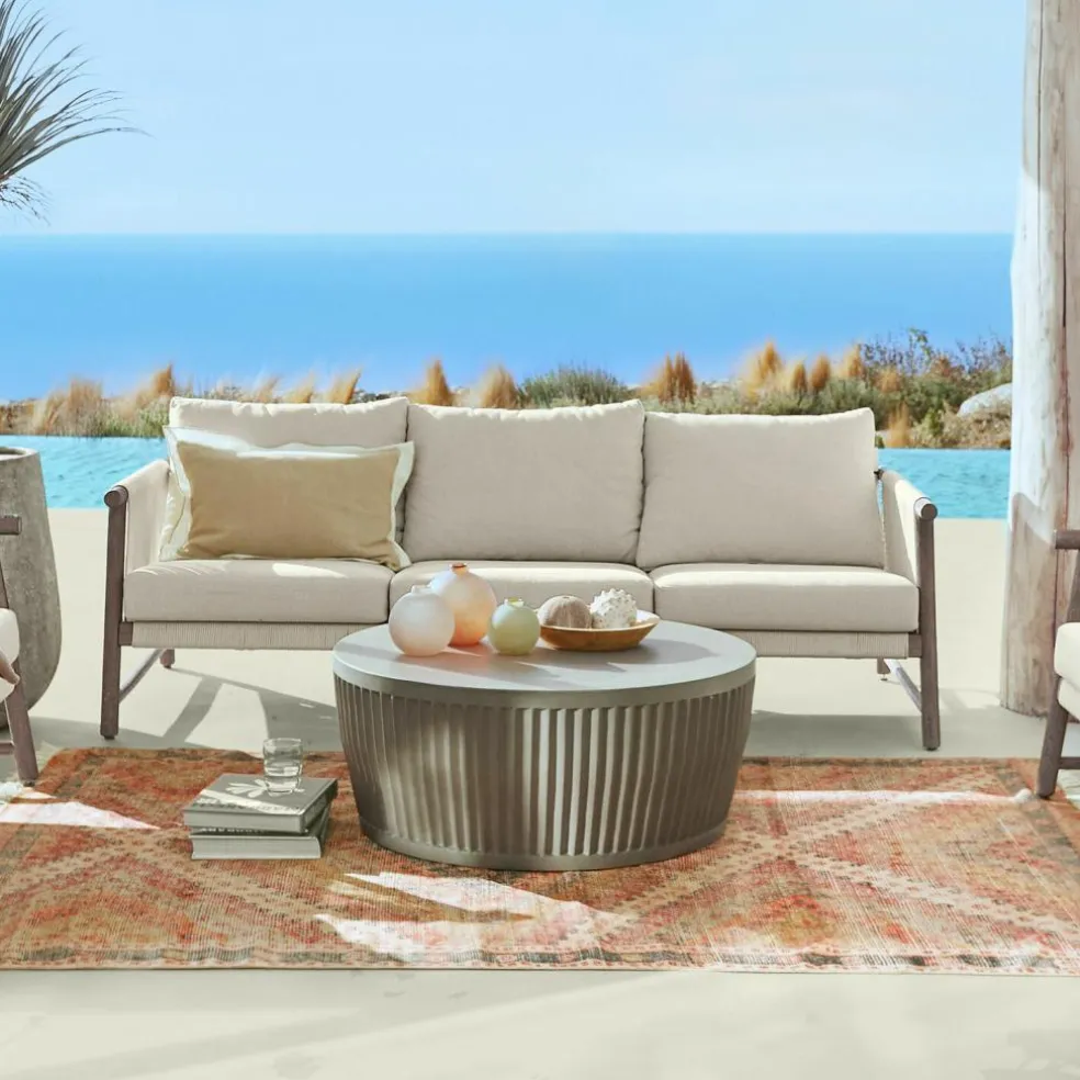 Mit seiner klaren, kreisrunden Form und dem fein strukturierten Rillenmuster setzt dieser Couchtisch einen puristischen Akzent in jedem Outdoor-Bereich. Das dezente graue Finish harmoniert mühelos mit moderner Architektur sowie natürlichen Umgebungen. Gefertigt aus massivem Beton, bietet er Stabilität und Wetterfestigkeit, sodass er auch bei widrigen Bedingungen dauerhaft bestehen bleibt. Ob als Mittelpunkt einer gemütlichen Lounge-Ecke oder als stilvolle Ergänzung Ihrer Terrasse – dieser Tisch verbindet Funktionalität mit einer zeitlosen Ästhetik, die jeden Außenbereich bereichert.