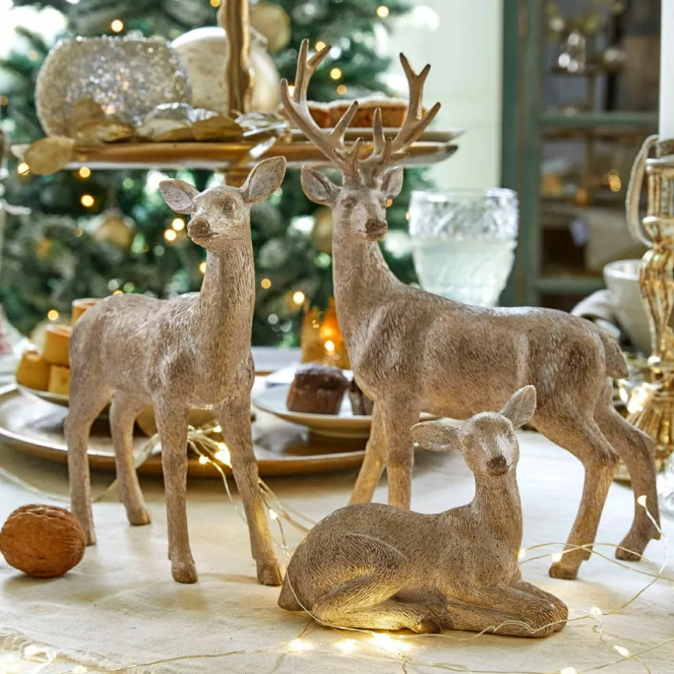 Verleihen Sie Ihrem Zuhause eine elegante Note mit diesem bezaubernden 3er Set von Deko-Figuren. Jede Tierfigur ist liebevoll von Hand bemalt und mit glänzenden, goldenen Akzenten versehen, die das Licht wunderschön einfangen und reflektieren. Diese Figuren strahlen eine zeitlose Anmut aus, die sowohl traditionelle als auch moderne Dekore wunderbar ergänzt. Die robusten Materialien sorgen für Stabilität und Langlebigkeit, sodass Sie viele Jahre Freude an diesen kunstvollen Stücken haben werden. Ob auf dem Kaminsims, einem Sideboard oder als Teil eines festlichen Arrangements, diese Figuren sind ein Blickfang, der jede Umgebung aufwertet.