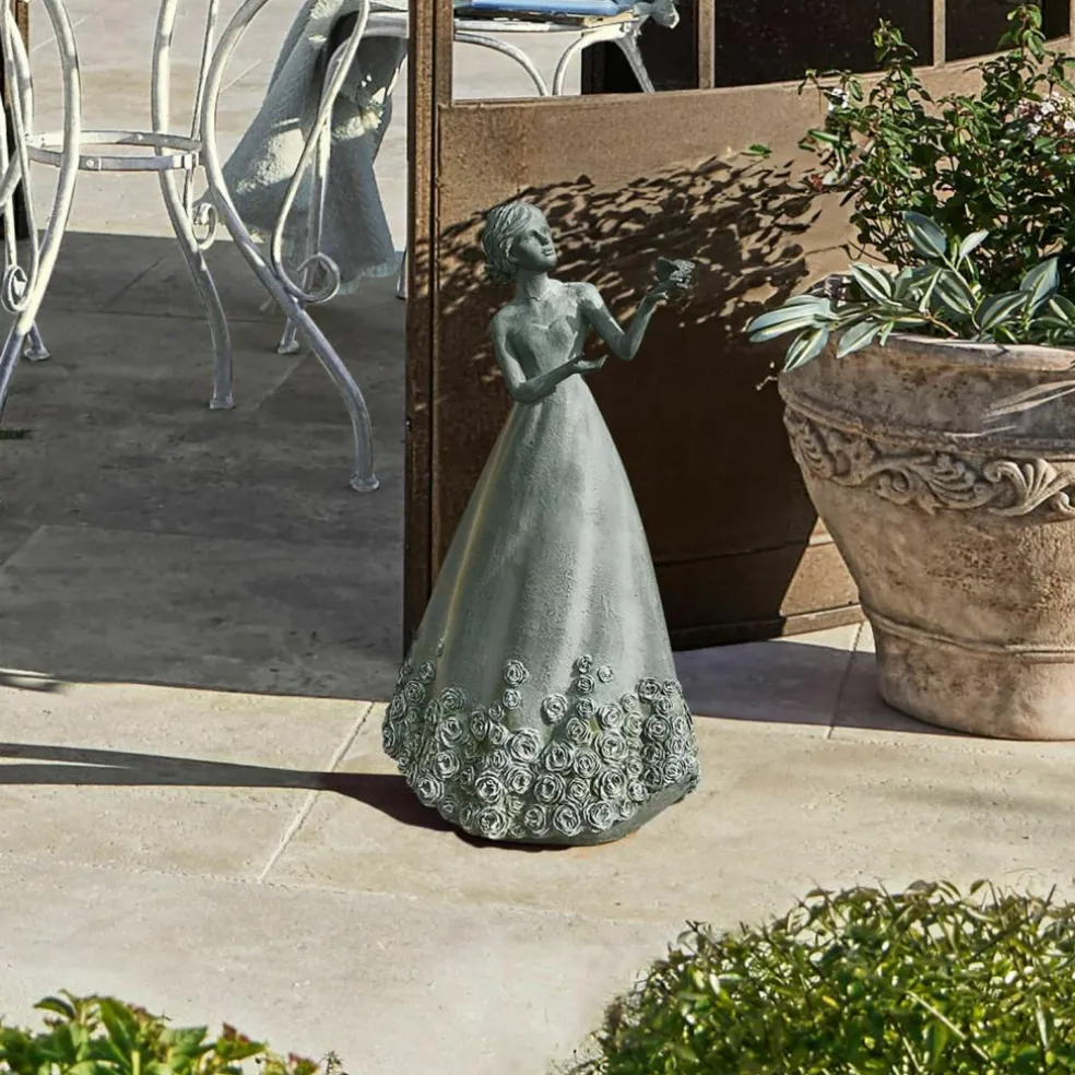 Die Deko-Figur fängt den Moment purer Harmonie ein, indem sie eine zarte Szene zwischen der Figur und einem kleinen Vogel in ihrer Hand zeigt. Der kunstvolle Faltenwurf des Kleides und die aufwendigen Blumenapplikationen sorgen für Tiefe und eine lebendige Struktur. Aus Polyresin gefertigt, verbindet diese Figur Robustheit mit einer ästhetischen Anmut, die in jeden Raum passt. Dank ihrer Größe zieht sie Blicke auf sich, egal ob auf einem Sideboard, einem Regal oder als Teil eines kreativen Arrangements. Sie bringt einen Hauch von Romantik und Poesie in jede Einrichtung.