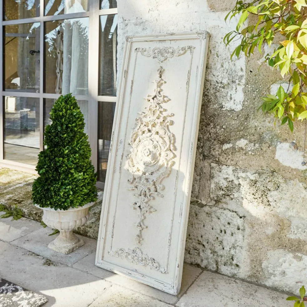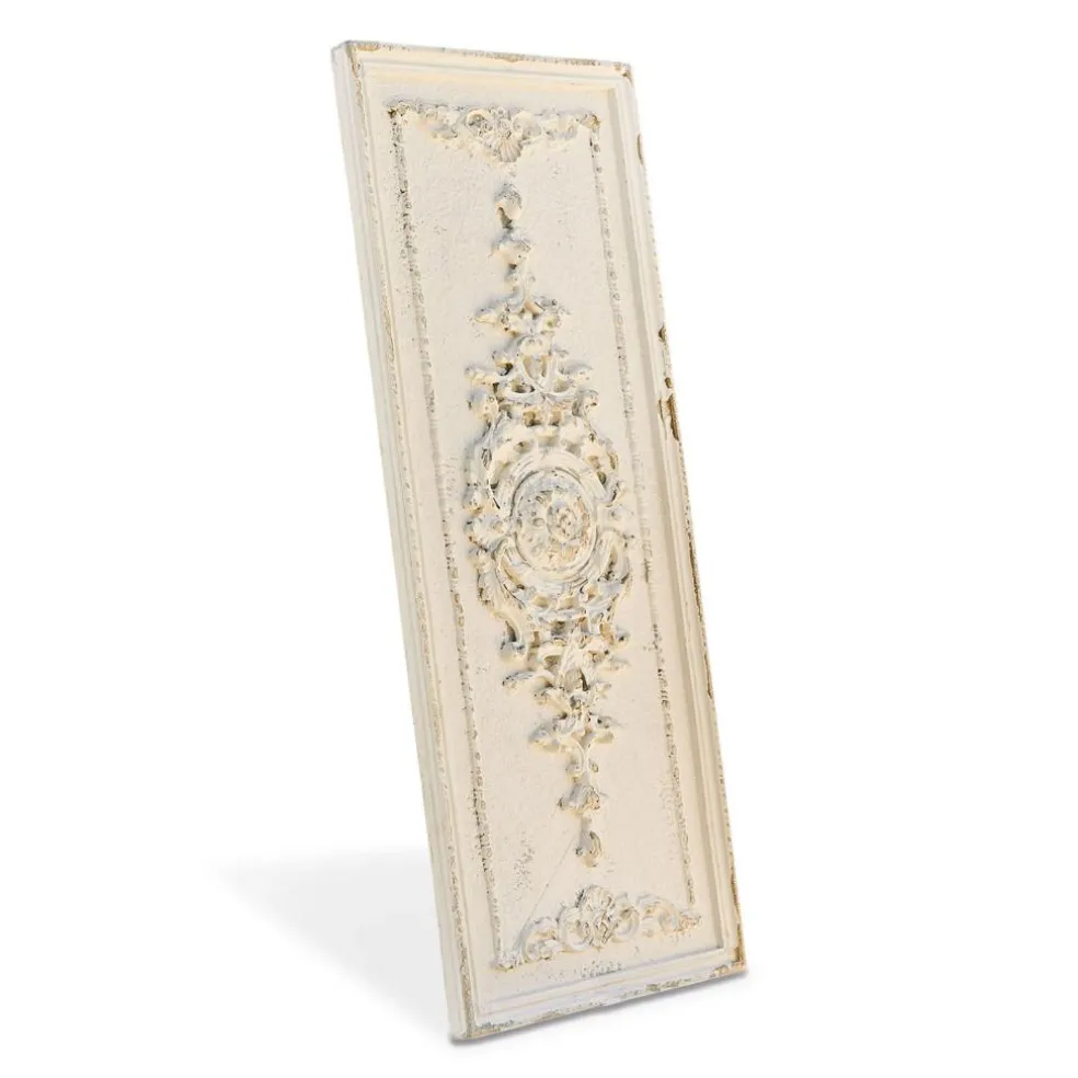 Vintage-Zauber pur. Das wunderschöne Deko-Paneel sieht wirklich aus, als stamme es aus einem früheren Jahrhundert. Es besteht aus Fiberglas mit romantischen, detailreichen Ornamenten. Die Verzierungen sind nur auf der Vorderseite aufgebracht. In aufwendiger Handarbeit werden dafür diverse Schichten auf- und wieder abgetragen, bis die individuelle Optik und ein perfekter Shabby-Chic perfekt sind. Ein wertvolles Highlight in angenehmer und recht imposanter Größe, welches jeden Raum adelt. Träumen Sie von verwunschenen Schlössern oder alten Landsitzen und kreieren Sie dieses schöne Flair in Ihren eigenen vier Wänden. Hieran werden Sie lange Freude haben. Dank des Hakens zur Wandbefestigung lässt das attraktive Design sich leicht aufhängen, oder stellen Sie es einfach angelehnt auf. Hiermit können Sie wirklich kreativ werden und Ihrem Zuhause eine ganz besondere Note verleihen.