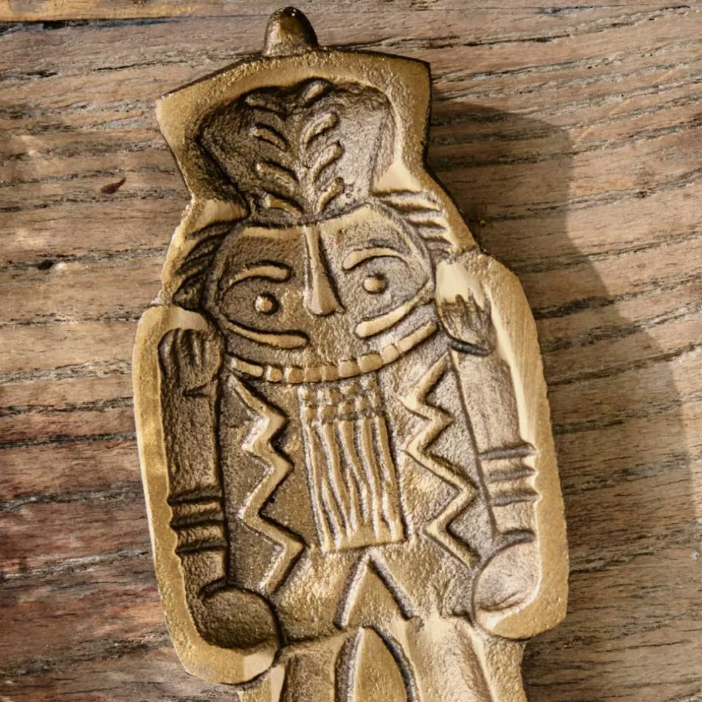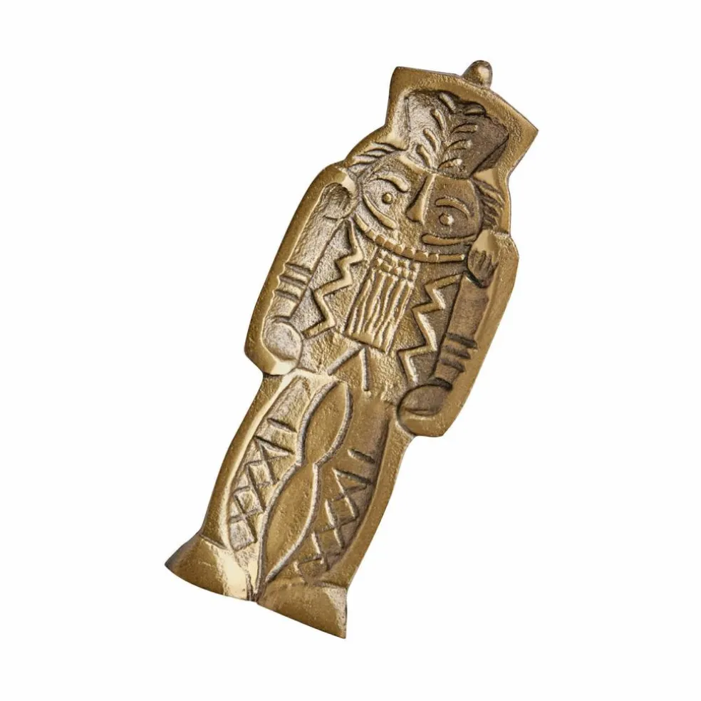 Diese dekorative Schale begeistert auf den ersten Blick durch ihr ungewöhnliches Design: Die Silhouette erinnert an einen stilisierten Nussknacker – kantig, verspielt und voller Charakter. Der gegossene Alukörper zeigt klare, grafisch anmutende Linien und Muster, die durch das Antikmessing-Finish dezent betont werden. Die leicht gewölbte Form eignet sich hervorragend als Ablage für kleine Alltagsgegenstände, Deko oder Schmuck. Auf dem Sideboard, im Eingangsbereich oder als origineller Akzent auf dem gedeckten Tisch – diese Schale sorgt garantiert für Gesprächsstoff.