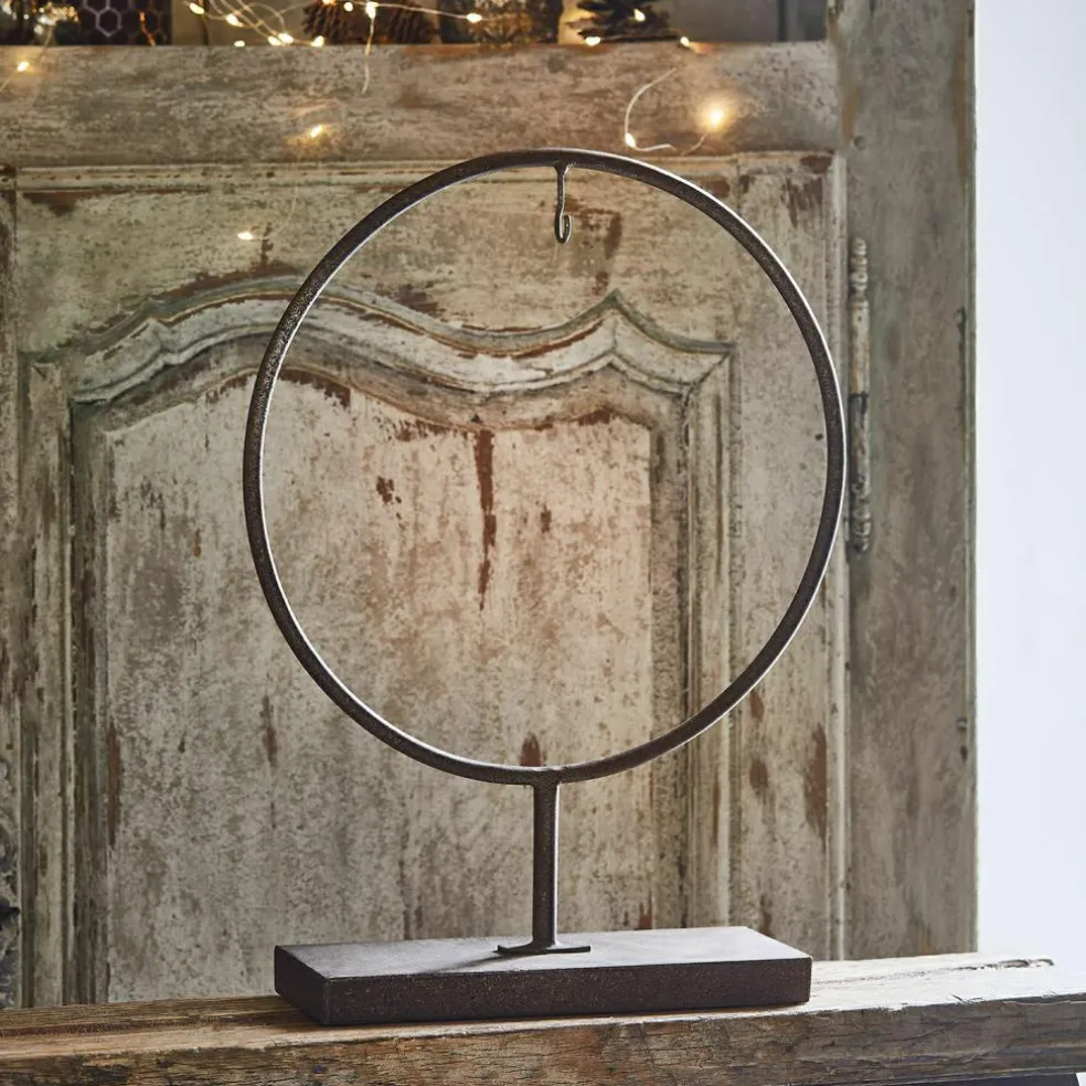 Verleihen Sie Ihrem Zuhause einen Hauch von nostalgischem Charme mit diesem kunstvoll gestalteten Deko-Ständer aus Eisen. Das Antikbraun-Finish in trendiger Rost-Optik sorgt für einen rustikalen und dennoch zeitlosen Look, der jede Einrichtung aufwertet. Dieser vielseitige Ständer ist ideal, um Ihre kreativen Dekorationsideen umzusetzen. Wickeln Sie Blumen oder Lichterketten um den kunstvoll gestalteten Ring und schaffen Sie stimmungsvolle Akzente. Der integrierte Haken bietet zusätzliche Möglichkeiten, Dekorationen stilvoll zu arrangieren. Ob im Wohnzimmer, auf der Terrasse oder im Eingangsbereich – dieser Deko-Ständer setzt überall harmonische Akzente und lädt zum Gestalten ein.