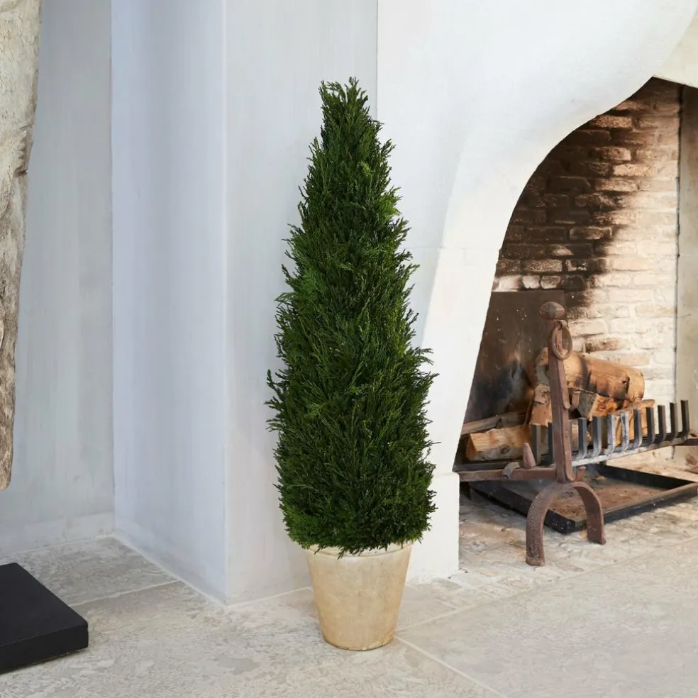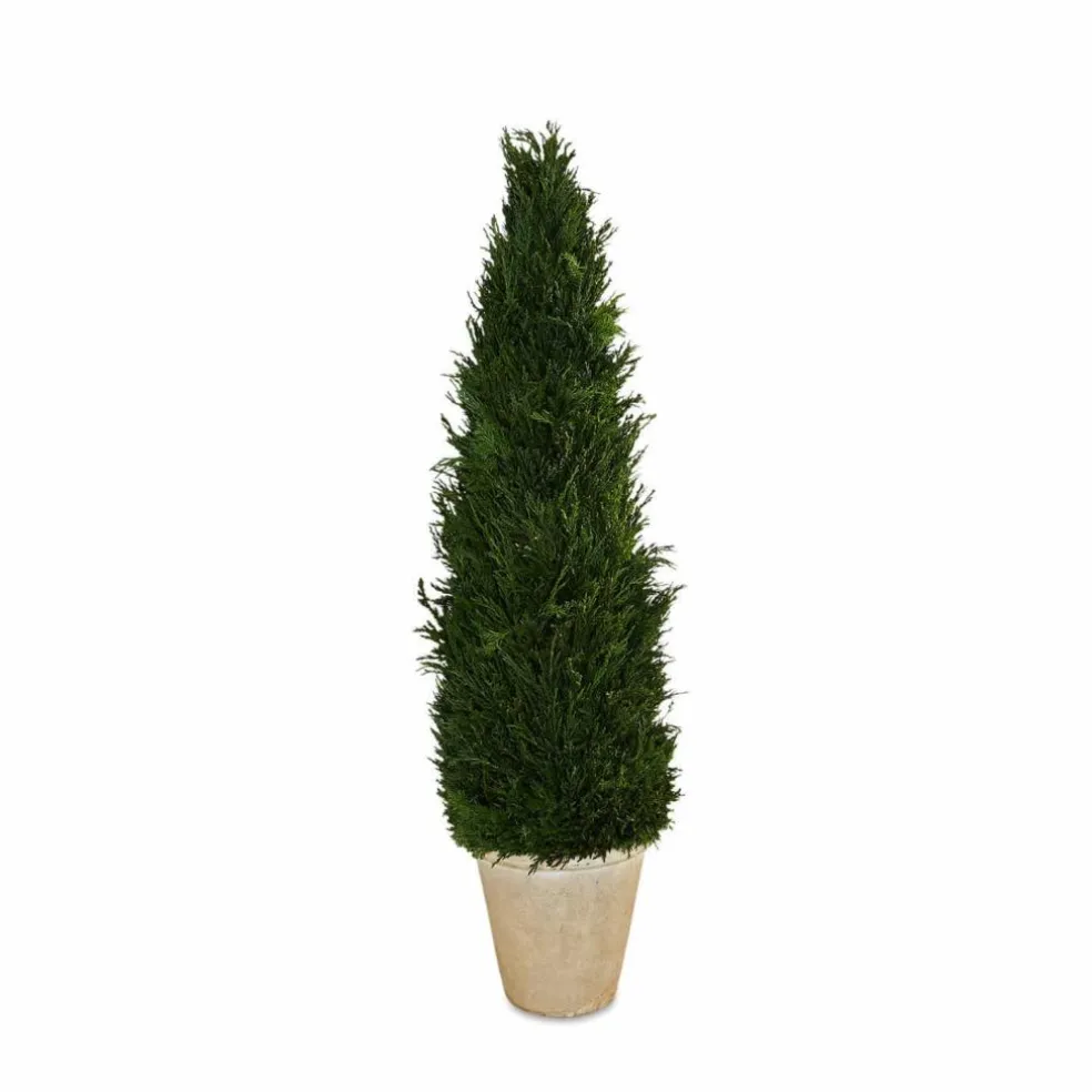 Diese Deko-Pflanze ist etwas ganz besonderes, denn es handelt sich um kein künstliches Kunststoffimitat. Verwendet wurden echte Zypressenzweige, die konserviert und in liebevoller Handarbeit zusammengefügt wurden. Ein hochwertiger Topf aus Terrakotta rundet den natürlichen Look perfekt ab. Mit dieser Topfzypresse schaffen Sie Ihre eigene immergrüne Oase, ganz ohne zeitraubende Pflege. Sie behält ihre wundervolle Form und punktet mit einem saftigen Grün. Der robuste Topf sorgt für einen stabilen Stand, kann aber natürlich auch gut transportiert werden, um mal hier und mal dort seine Schönheit zu entfalten. Sie können mehrere Exemplare der hohen Zypresse nebeneinander platzieren, um vielleicht ein langes Fensterbrett zu schmücken oder im Flur eine kleine Allee zu schaffen. Genießen Sie beständige und dennoch natürliche Deko in Ihrem Zuhause.