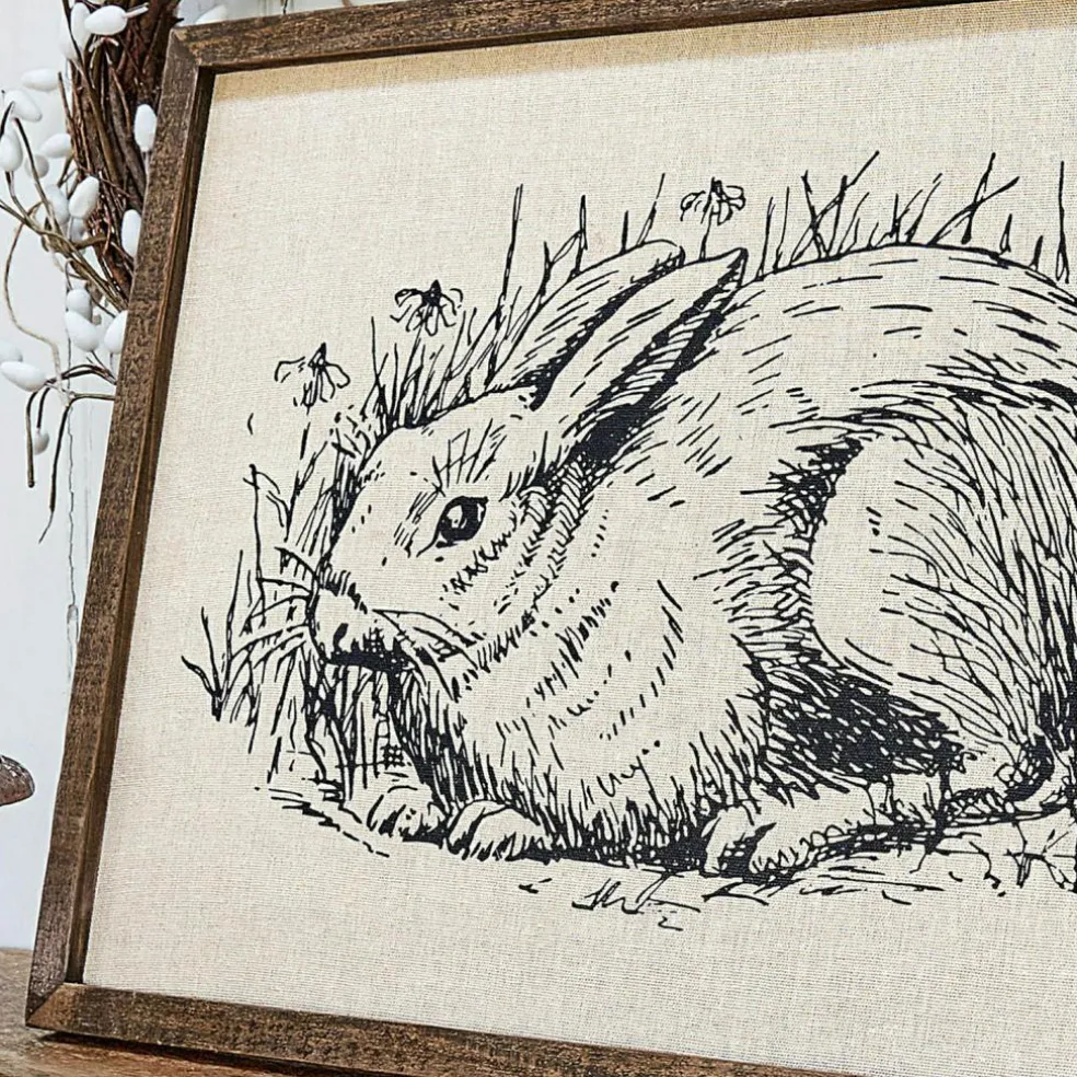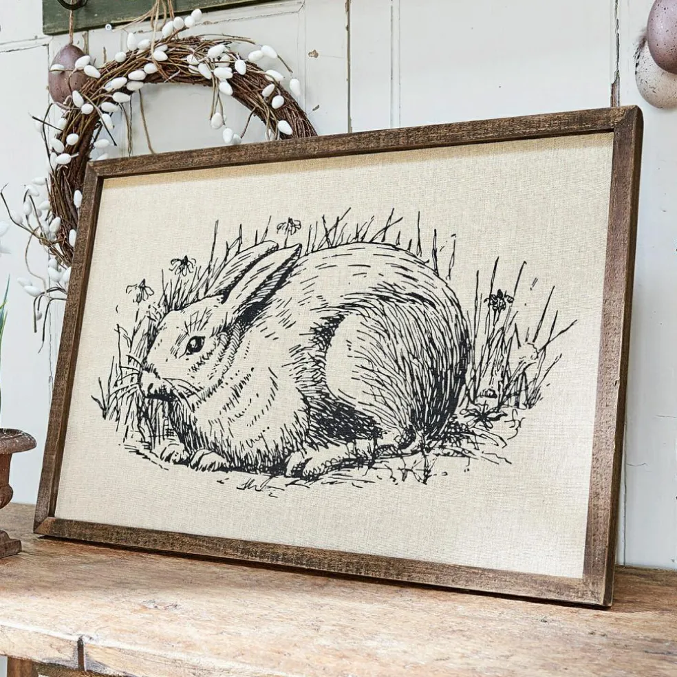 Dieses reizende Design ist ideal für die Osterzeit und für alle, die die Natur lieben. Das schicke Deko-Board zeigt ein detailreiches Hasenmotiv, welches wie kunstvoll gezeichnet aussieht. Ein gebeizter Rahmen aus Tannenholz korrespondiert harmonisch mit dem Druck auf Baumwoll-Canvas und Polyester. Das hübsche Motiv erscheint wie fein von Hand auf die Leinwand gezaubert, und es eignet sich perfekt für die Oster- oder Frühlingsdekoration, und natürlich auch für alle Hasenliebhaber. Dieses ansehnliche Design passt ideal zum Landhaus-Stil und fügt sich gehängt oder gestellt überall harmonisch ein.