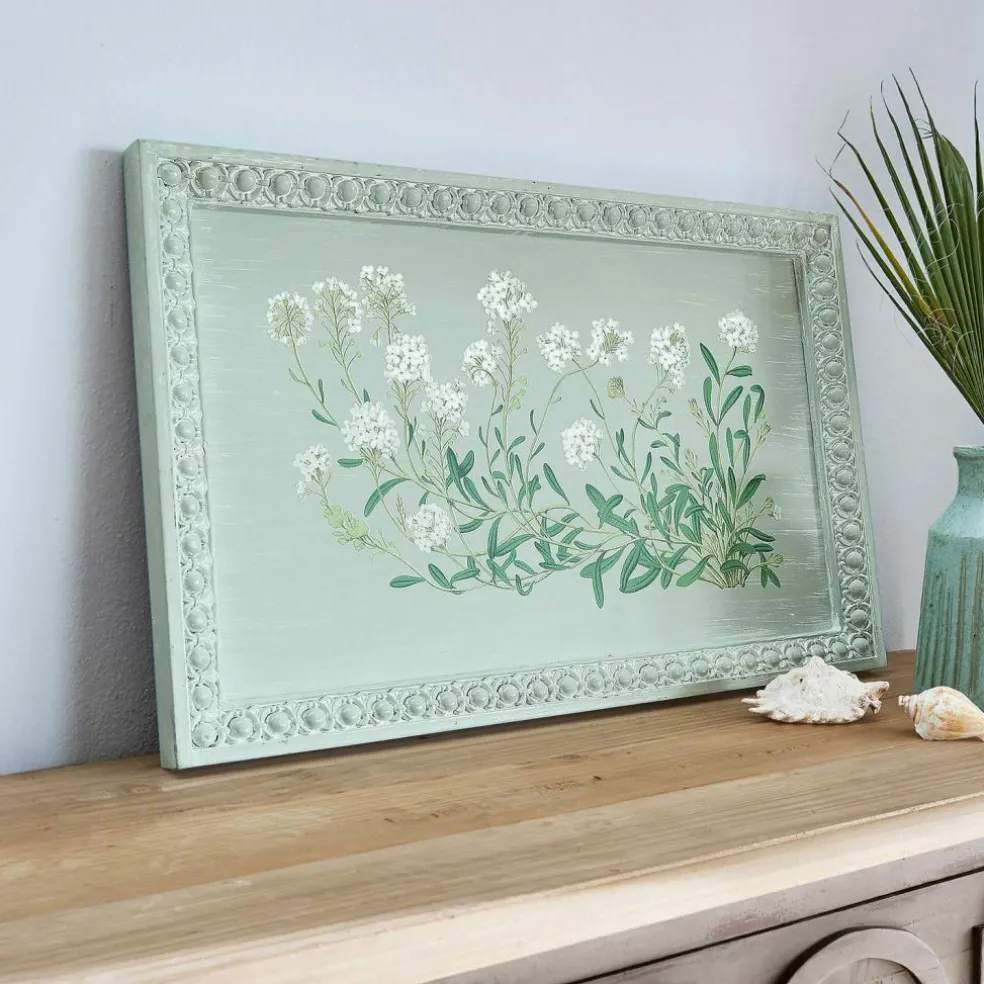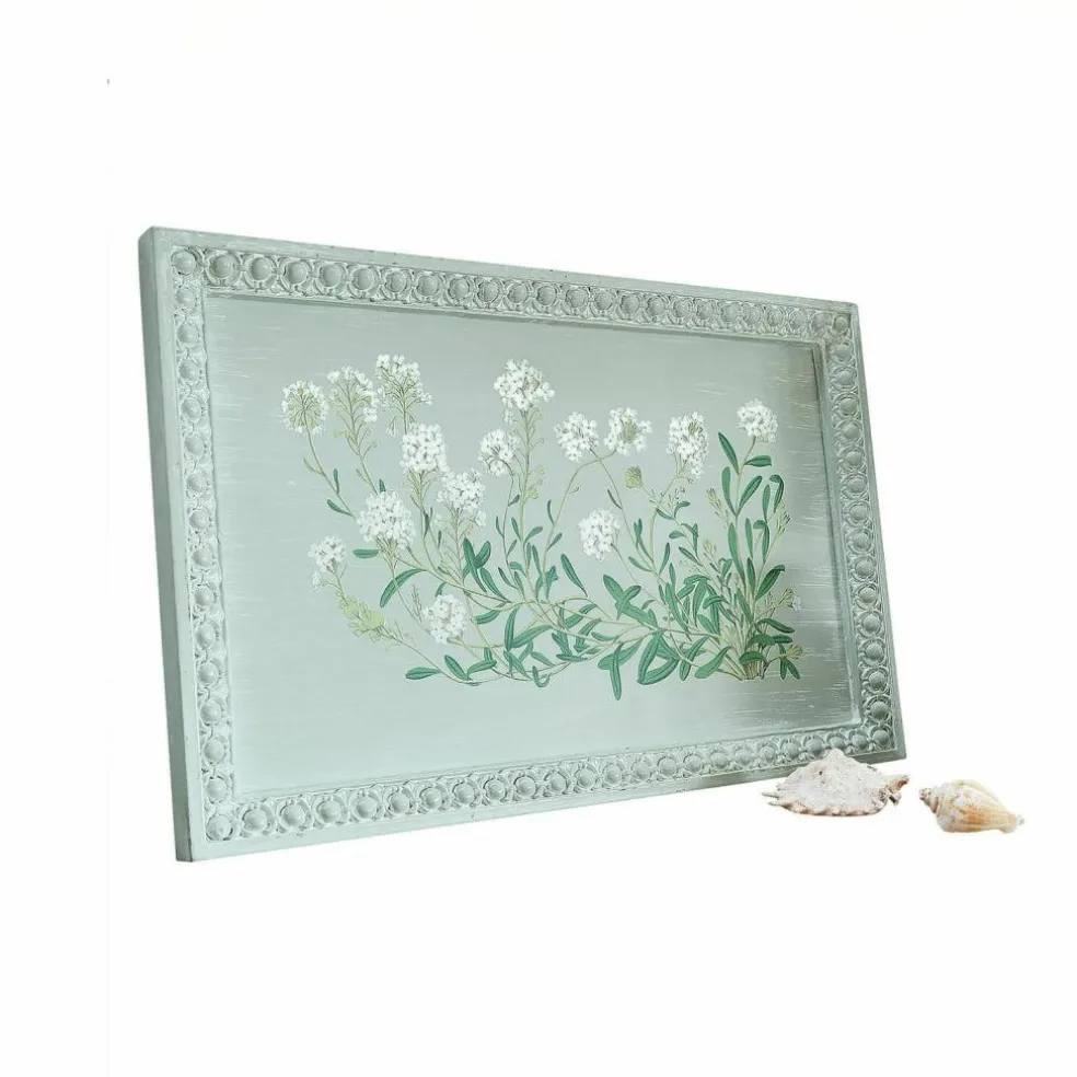 Dieses wunderschöne Deko-Board erscheint wirklich wie ein Schatz aus früheren Zeiten, so authentisch ist der nostalgische Look. Es könnte direkt ein geliebtes Erbstück sein und passt perfekt zum Landhaus-Stil. Das stilvolle Schmuckstück ist fein von Hand bemalt und hat einen aufwendig verzierten Rahmen aus Polyresin. Der Rest besteht aus Holz. Dieses ganz bezaubernde Accessoire ziert liebevoll Ihre Wohnräume oder auch Küche und Flur. Das kunstvolle, florale Motiv hat Vintage-Flair und passt ideal in die Gesamtkomposition. Dieses wundervolle, aufwendig gestaltete Deko-Board bringt den Zauber vergangener Tage in Ihr Heim und dürfte das Herz aller Vintage-Freunde höher schlagen lassen. Es kann angelehnt gestellt oder an die Wand gehängt werden.