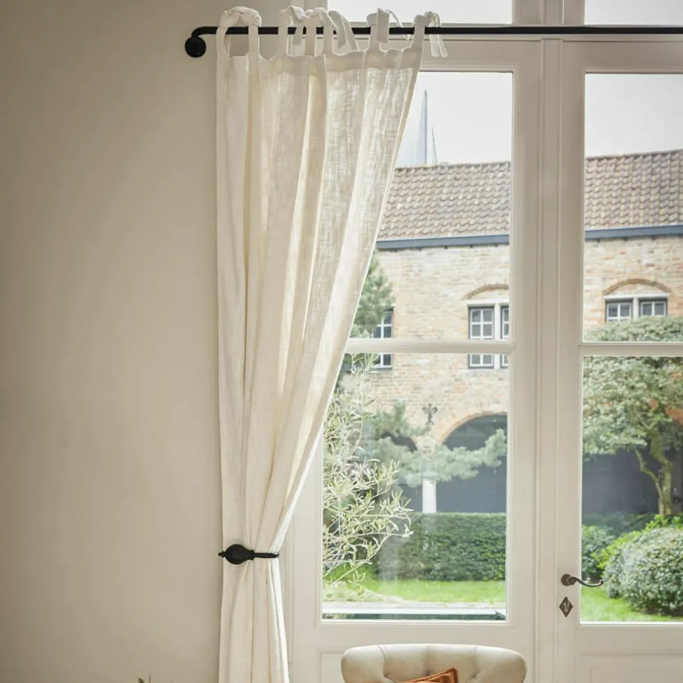 Diese Gardinenstange denkt über den rechten Winkel hinaus. Ihr raffiniertes Design ermöglicht die Montage über Eck – ideal für charmante Übergänge zwischen zwei Räumen oder als Vorhanglösung im Türbereich. Das matte Schwarz des pulverbeschichteten Eisens verleiht ihr eine moderne, fast grafische Wirkung, während die dekorativen Endstücke und Halter mit nostalgischem Flair spielen. Praktisch: Die Stange ist vor der Montage ausziehbar und passt sich an Ihre Maße an – nach dem Anbringen bleibt die Länge fest. Eine ästhetisch durchdachte Lösung für alle, die nicht nur abhängen, sondern gestalten wollen.