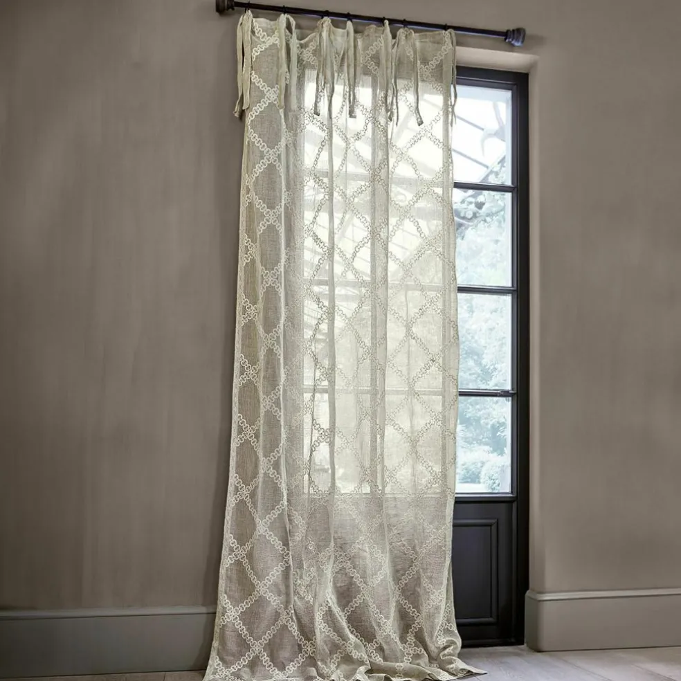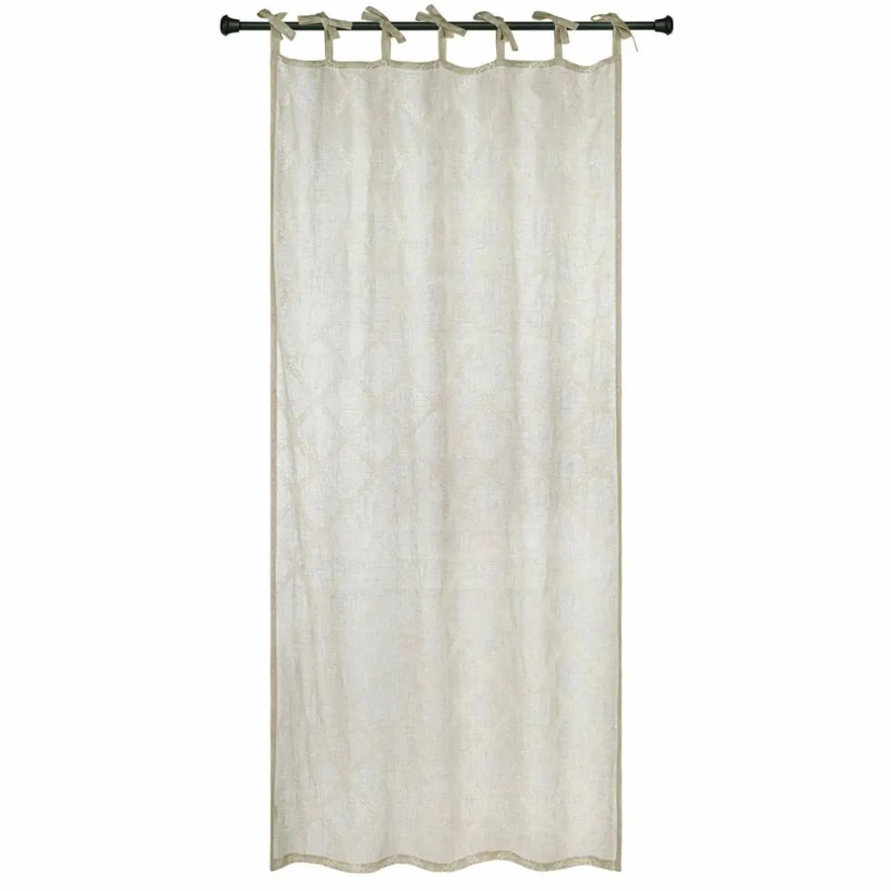Ein Hauch von Eleganz und Nostalgie schwingt in dieser bezaubernden Gardine mit. Gefertigt aus reinem Leinen, strahlt sie eine natürliche Wärme und Ruhe aus. Die feinen Spitzenverzierungen fügen eine romantische Note hinzu, während die praktischen Bindebänder für eine unkomplizierte und flexible Befestigung sorgen. Diese Gardine ist mehr als nur ein Sichtschutz – sie ist ein Ausdruck von Stil und Gemütlichkeit, der jedem Raum eine sanfte, beruhigende Atmosphäre verleiht.