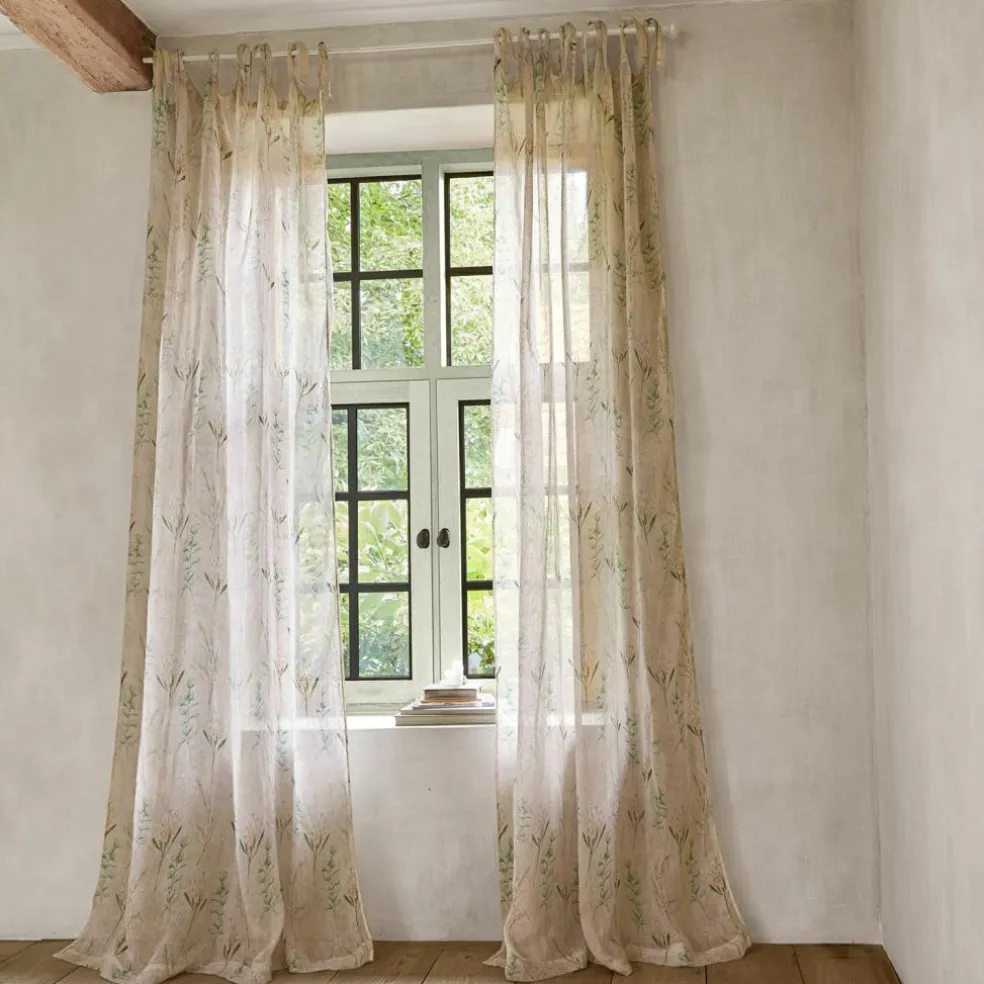 Diese Leinen-Gardine ist die perfekte Wahl für alle, die natürliche Materialien und dezentes Design schätzen. Aus reinem Leinen gefertigt, besticht sie durch ihre luftige und leichte Webstruktur, die gleichzeitig robust und langlebig ist. Das subtile, florale Muster in sanften Pastelltönen sorgt für eine ruhige, entspannte Atmosphäre und fügt sich harmonisch in verschiedene Einrichtungsstile ein. Die integrierten Bindebänder verleihen der Gardine nicht nur einen besonderen Charme, sondern bieten auch maximale Flexibilität bei der Aufhängung. Ob im Wohnzimmer, Schlafzimmer oder in der Küche – diese Gardine bringt natürliche Schönheit und sanftes Licht in Ihr Zuhause.
