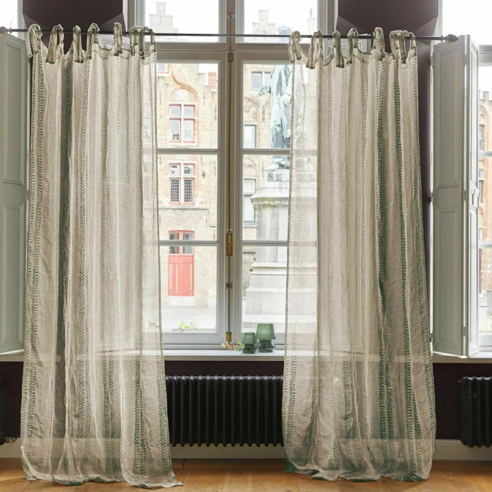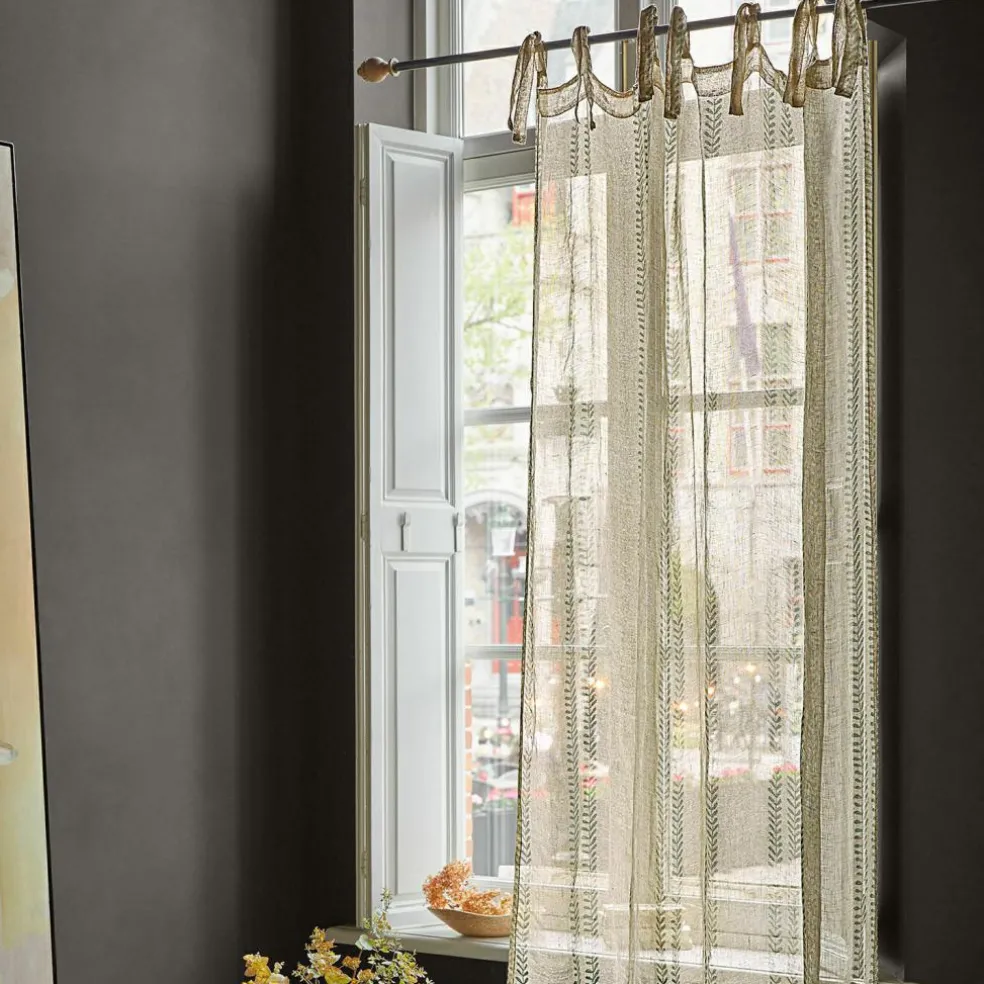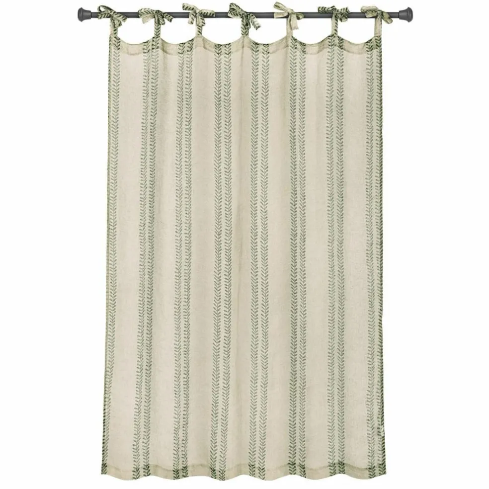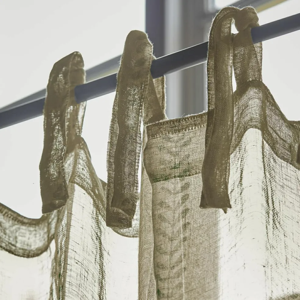 Diese Gardine begeistert auf den ersten Blick durch ihre natürliche Ausstrahlung und das charmante, grüne Blätterrankenmuster. Der feine Leinenvorhang wirkt luftig und leicht, lässt Tageslicht sanft durchscheinen und sorgt so für eine angenehme Raumatmosphäre. Die Bindebänder am oberen Rand sind nicht nur praktisch, sondern auch ein stilistisches Detail, das an ein Landhausfenster in einem idyllischen Cottage erinnert. Ob im Schlafzimmer, Wohnzimmer oder Flur – diese Gardine bringt textile Wärme und eine liebevolle Gestaltungsidee ans Fenster, ohne aufdringlich zu wirken. Ein zurückhaltender Blickfang, der Natürlichkeit und Stil vereint.