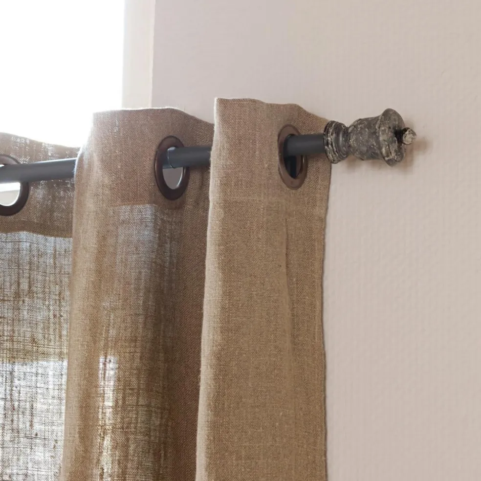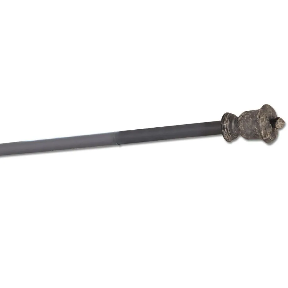 Die Gardinenstange im klassischen Design punktet mit einer flexibel ausziehbaren Eisenstange bis auf rund 224 Zentimeter. Die Abschlüsse an beiden Seiten bilden handbearbeitete Holzknäufe. Nach dem Drechseln und dem Einbringen der Schnitzereien wurden diese mit einem Finish in Antikgrau versehen. Schön zu einer Einrichtung im Landhaus- oder Shabby-Chic oder als spannender Kontrast innerhalb eines klassisch-eleganten oder modernen Ambientes.